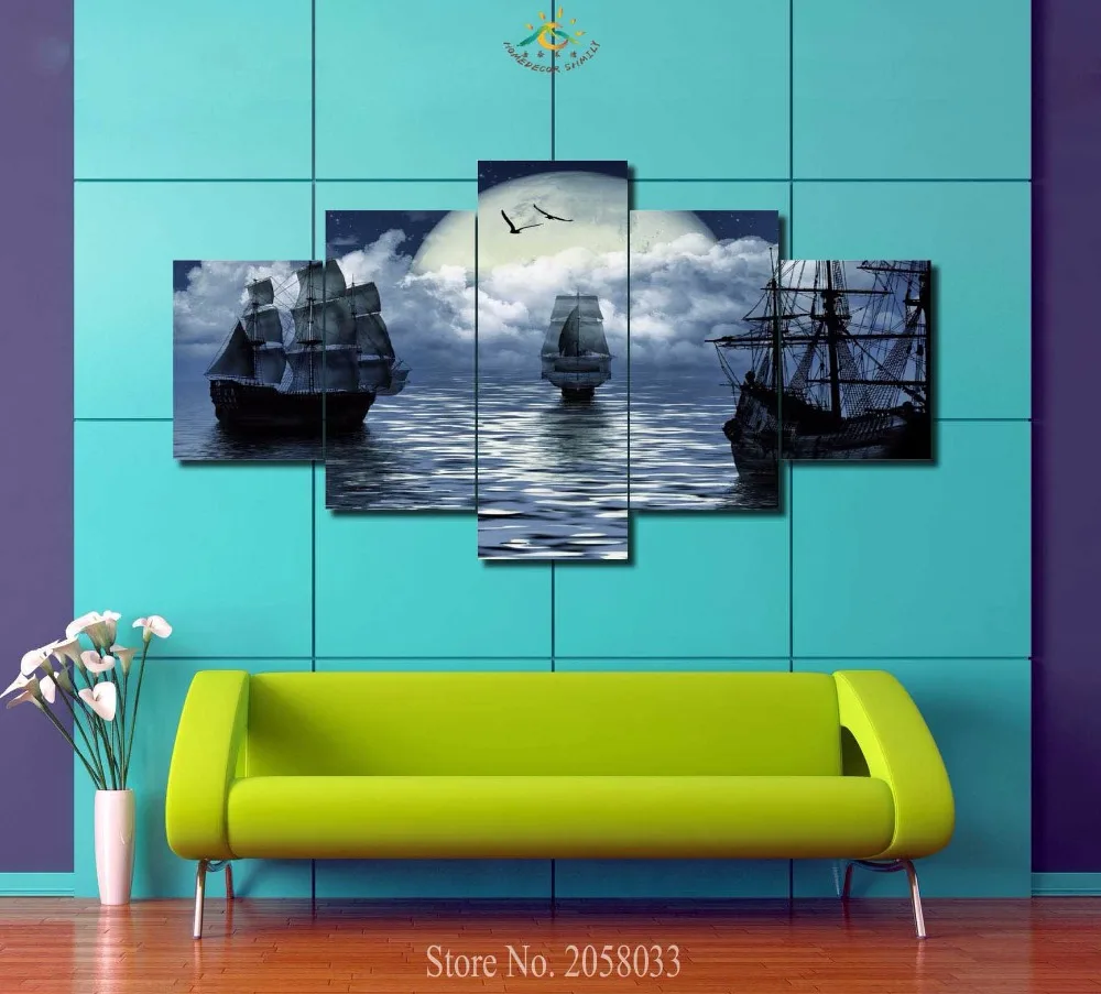 . Melhor 3 4 5 peças de Edição Limitada Veleiro Pintura arte da parede Estampas e Cartazes Pintura Da Lona do Retrato Da Parede decoração de casa Barato Online Preço.