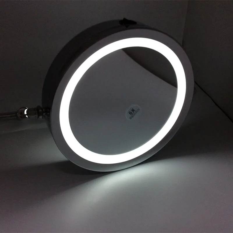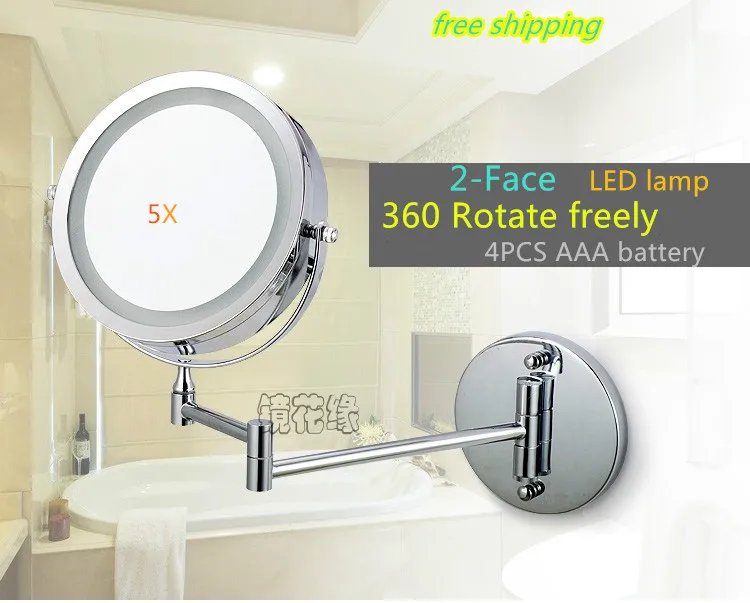 Comprar 7 polegada Duplo Braço Estender espelho do banheiro com Bateria luz LED 2 Face tapeçaria banho 5 x ampliação espelho de Maquiagem Baratas Online Preço.