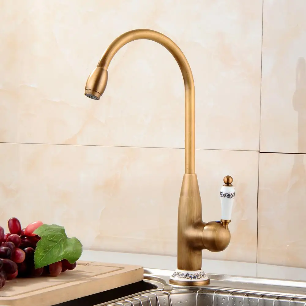 Comprar Antique Brass Finish Bronze Torneira Da Cozinha Único Punho Água Quente e Fria Pia Da Cozinha Torneira 360 Swivel Pia Do Banheiro Mixer tap Baratas Online Preço.