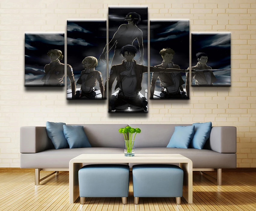 Comprar Cartaz Da Parede da lona Art HD Imprime Imagens Abstratas 5 Peças Anime Attack on Titan Papel Pinturas Sala Decor Quadro Baratas Online Preço