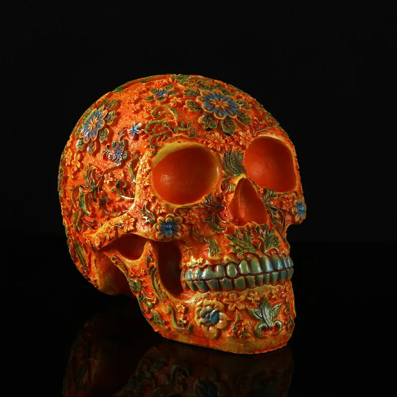 Comprar Crânio cor Enfeites de Resina Artesanato Decoração de Halloween Crânio Criativo Bar Decoração Crânio Estátua Estátuas Esculturas Estátuas Baratas Online Preço.