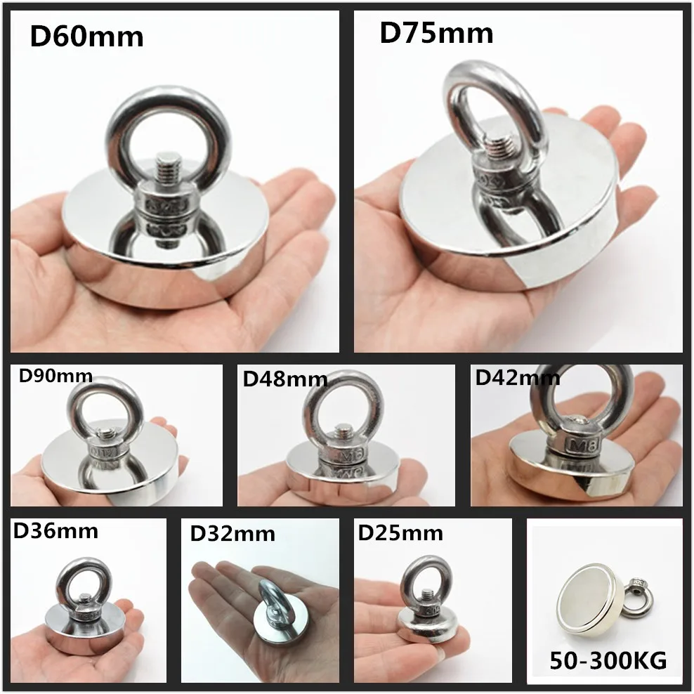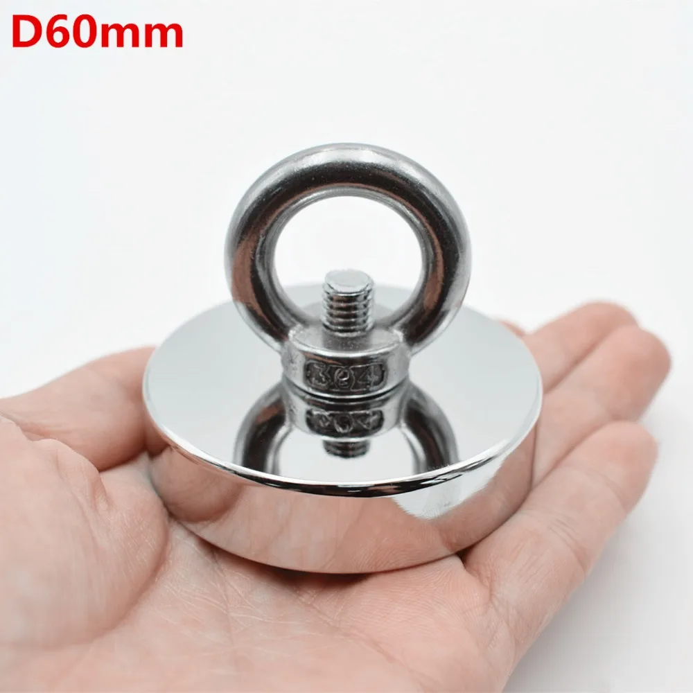 Comprar D60mm forte poderoso Ímã de neodímio rodada gancho ímã Suporte de equipamentos De Pesca De mar de resgate Puxando Pote com anel De Montagem Baratas Online Preço.