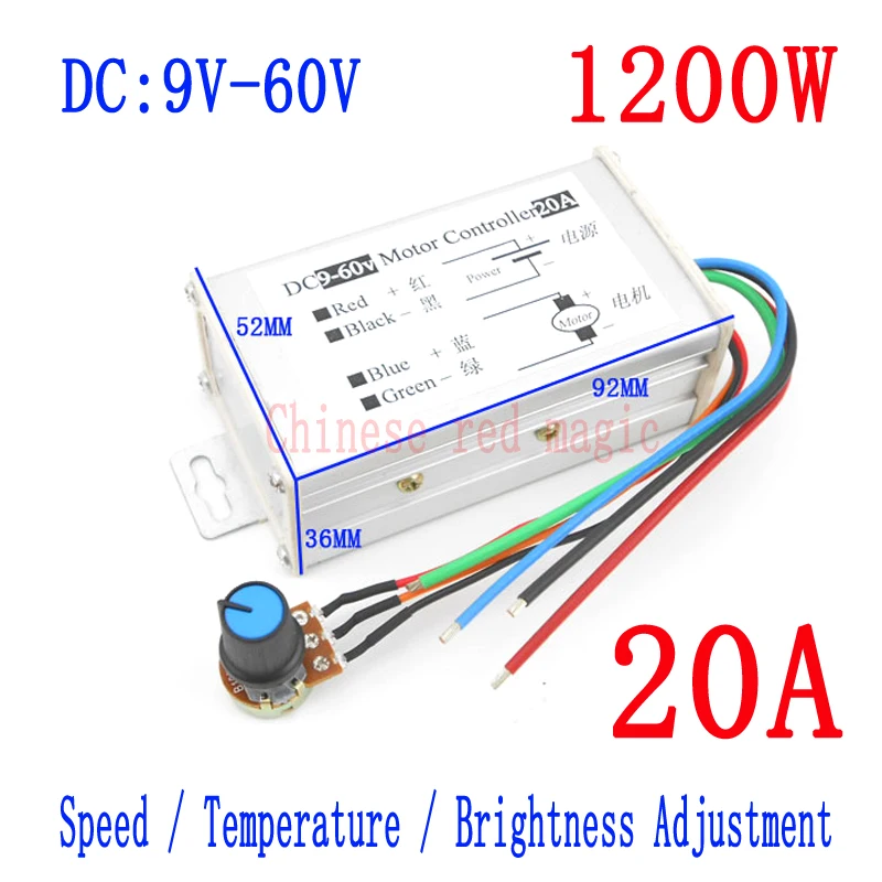 Comprar DC controlador Do Motor 1200 W 20A 9v12v24v36v48v60v pwm bldc motor brushless controlador de Velocidade temperatura ajuste de brilho Baratas Online Preço.