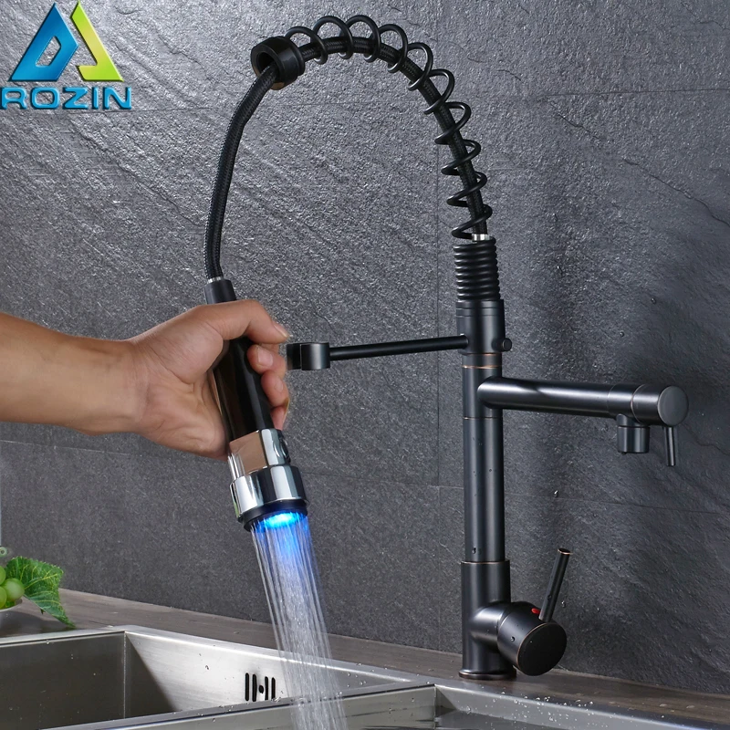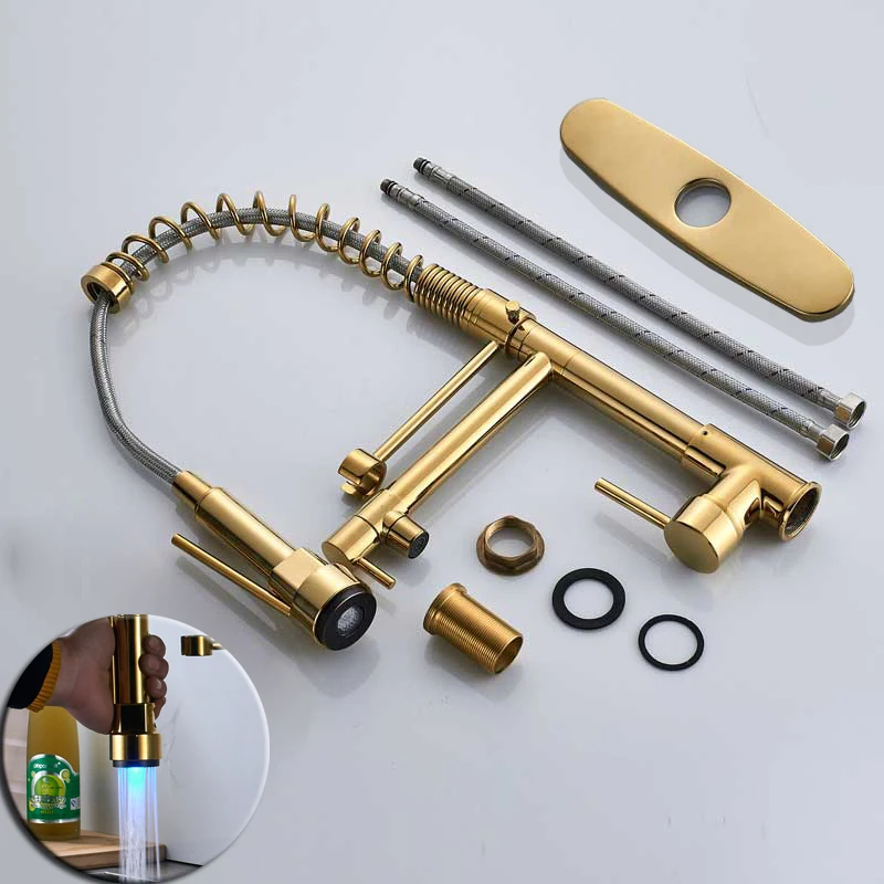 Comprar Deck Montado Água Quente e Fria Torneira Da Cozinha Níquel Escovado Primavera Pull Down Spray Duplo Bico Torneira Misturadora de Cozinha Baratas Online Preço.