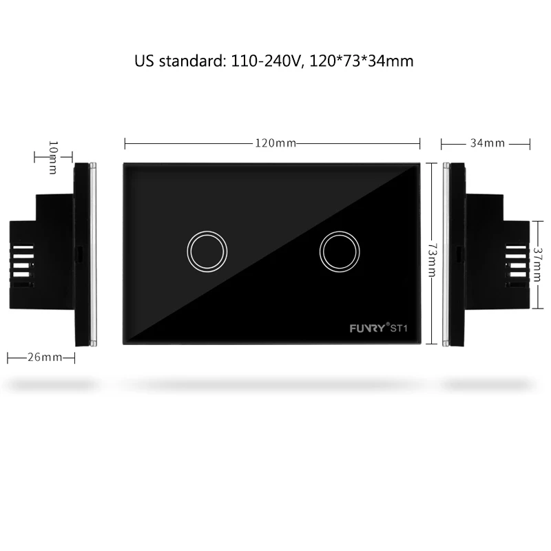 Comprar Interruptor de Toque Interruptor de Luz de parede de Luxo Painel de Vidro Cristal Interruptor de Luz Led 110 240 V 120*73*34mm Funry ST1 2 Gang Padrão DOS EUA Baratas Online Preço.