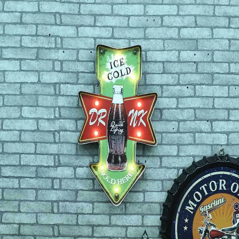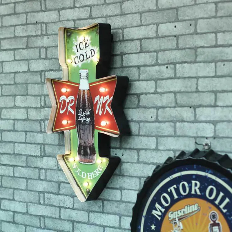 Comprar Lightbox LED Neon Sign chique Gasto do vintage Cerveja Cafe Bar Sinalização soqueiras arma de Metal home decor Placas decorativas Baratas Online Preço