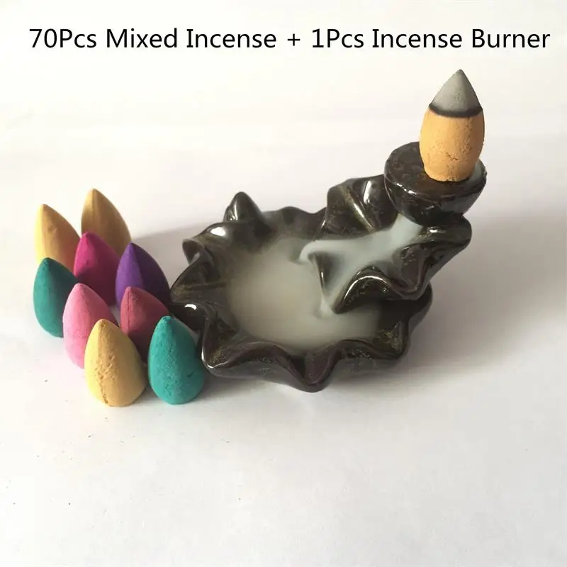 Comprar Mixed 70 Pcs Queimador de Incenso Natural Com 1 Pcs Lavanda Osmanthus Sakura Fumaça Refluxo Refluxo Incenso Torre Incenso Cone Bala Baratas Online Preço.