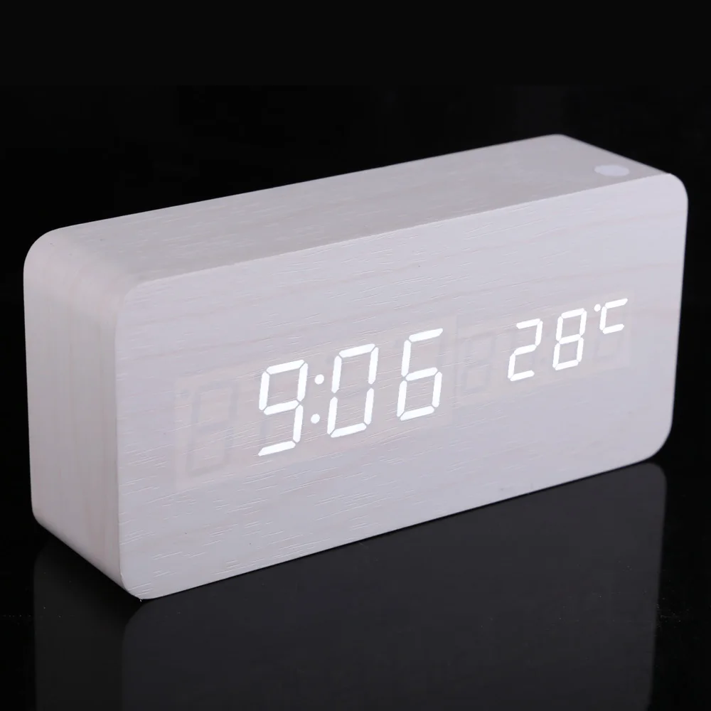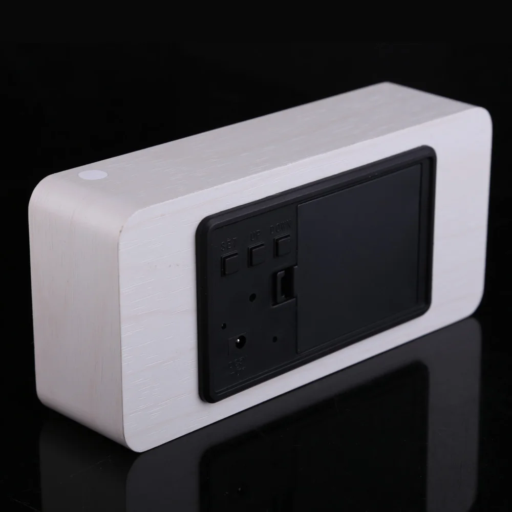 Comprar Modern Retângulo De Madeira Digital LED Branco Luz desplay tem controle acústico sentindo Despertador com Calendário Baratas Online Preço.