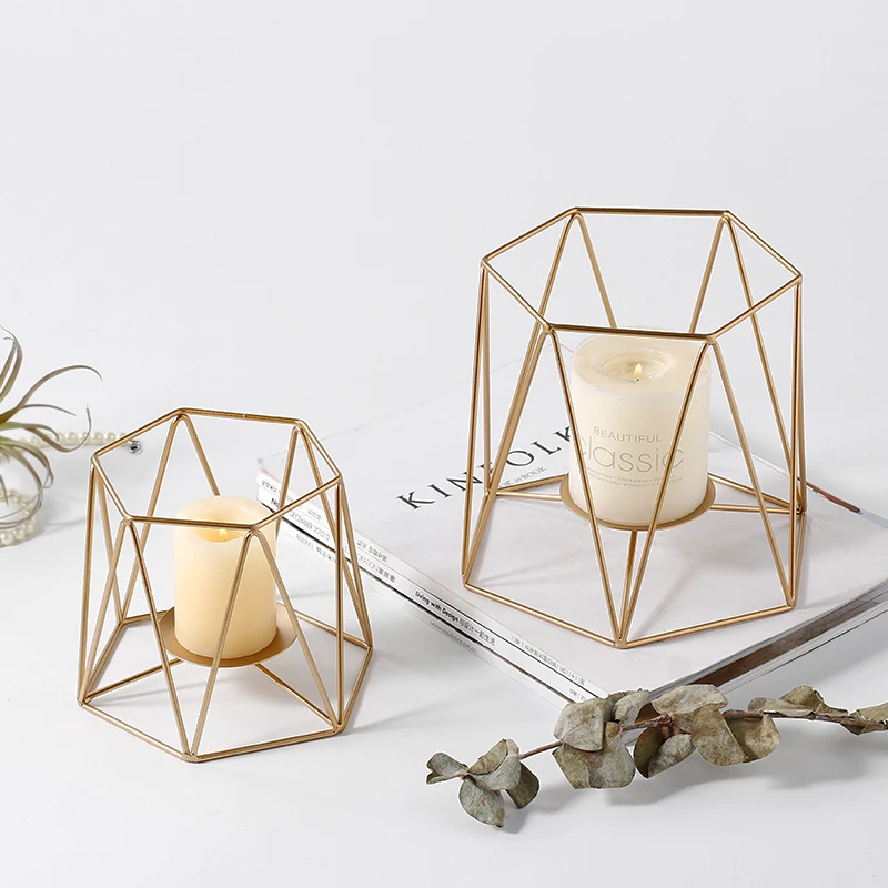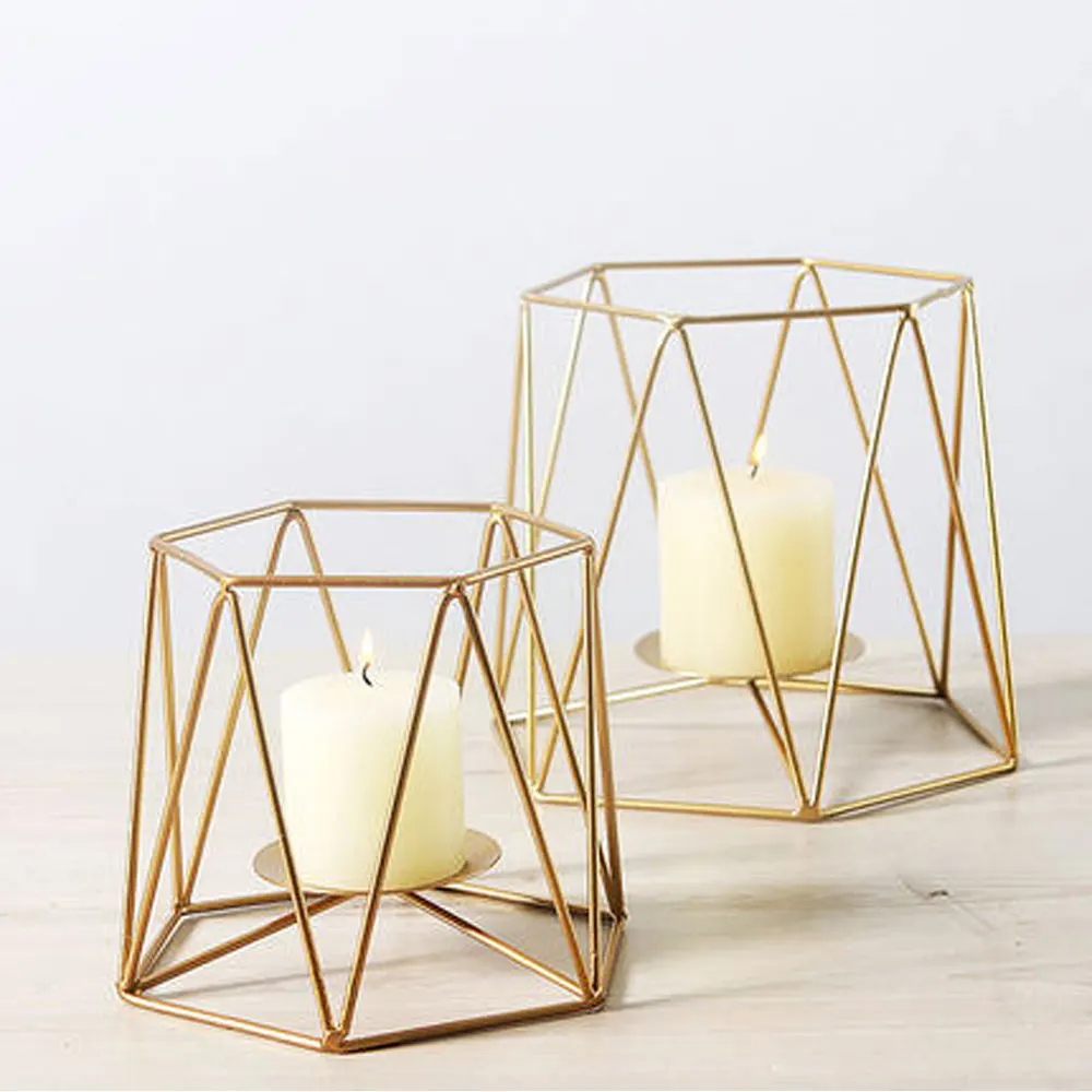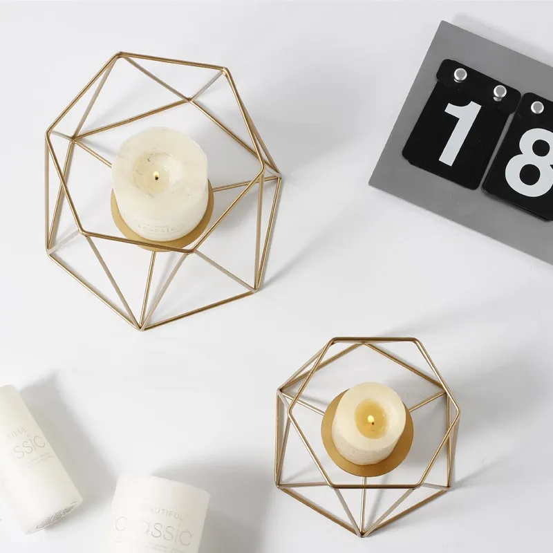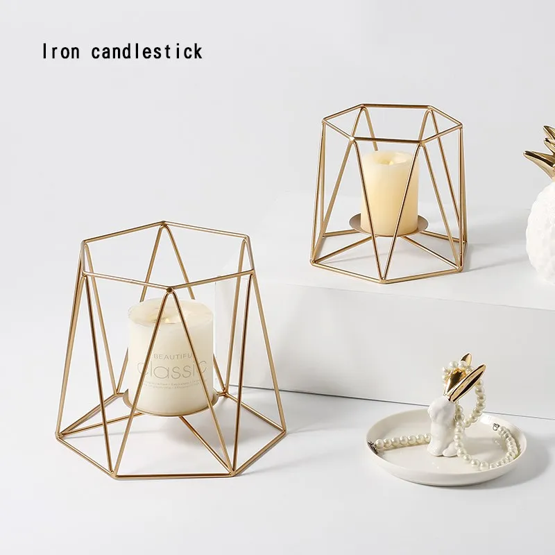 Comprar Nordic Decoração Da Casa De Luxo de Ouro Geométrica Linha Romântica Castiçal de Ferro Forjado Castiçal Decoração Sala de Ornamento da Arte Baratas Online Preço
