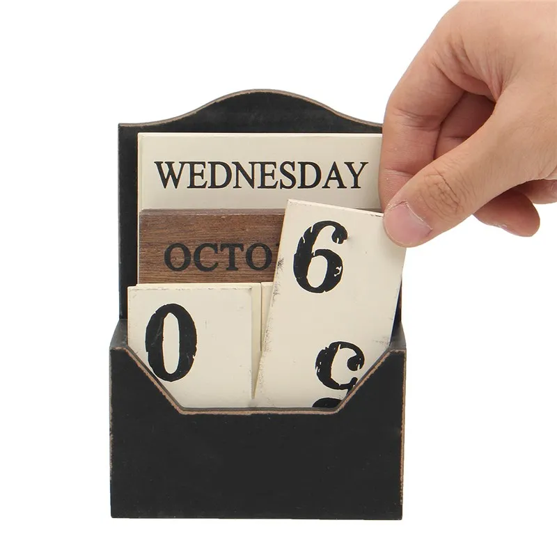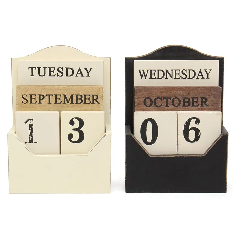 Comprar Preto Branco Bloco Calendário Perpétuo Calendário De Mesa de Madeira De Madeira Do Vintage Retro Ambiental de Madeira Mesa de Escritório Em Casa Decoração DIY Baratas Online Preço.