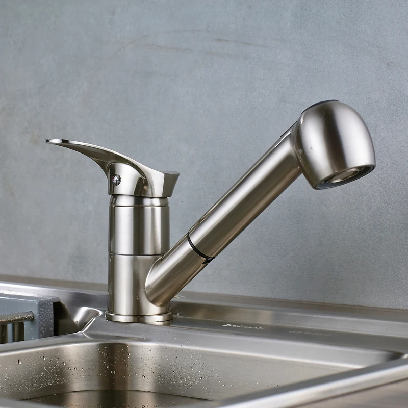 Comprar Pull Out Kitchen Sink Faucet Single Lever Misturador Torneira Da Cozinha Níquel Escovado Bico Pulverizador de Vapor Quente E Fria Torneira de Água para cozinha Baratas Online Preço.