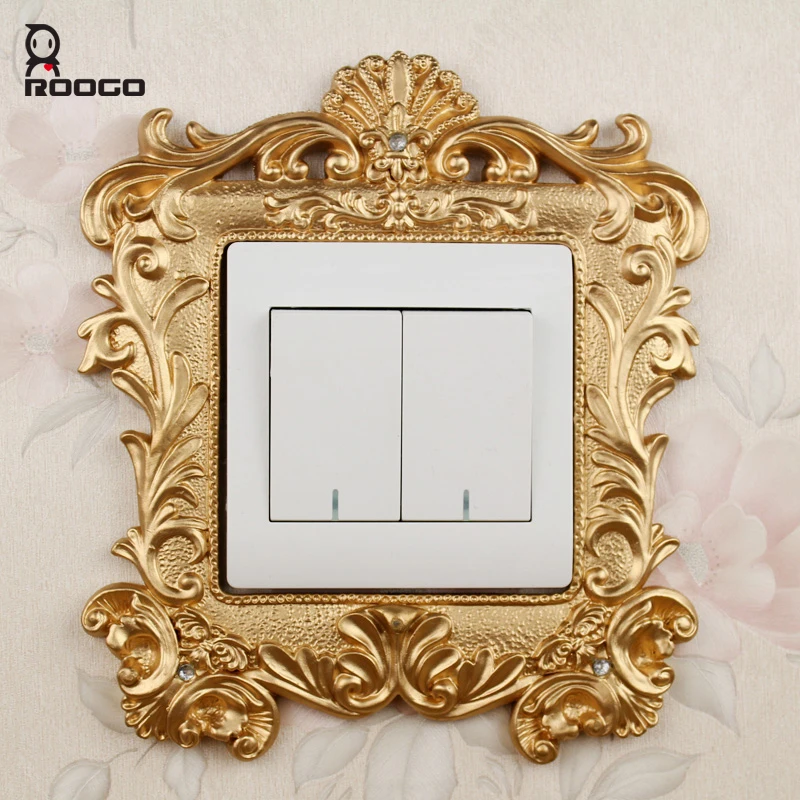 Comprar Roogo interruptor do painel de ouro 3d adesivo decoração resina acessórios para casa de moda de Luxo real conjunto de soquete adesivos de parede Baratas Online Preço.