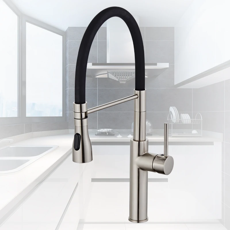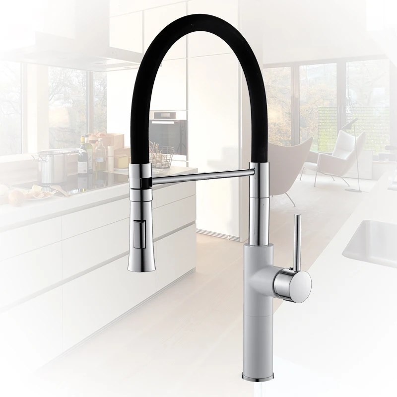 . Melhor Torneiras de cozinha Pia Da Cozinha Chrome Guindaste Convés Montar Puxar Para Baixo Dupla Bico Pulverizador Torneira De Cozinha Misturador Torneiras de Água LK 9910 Barato Online Preço.