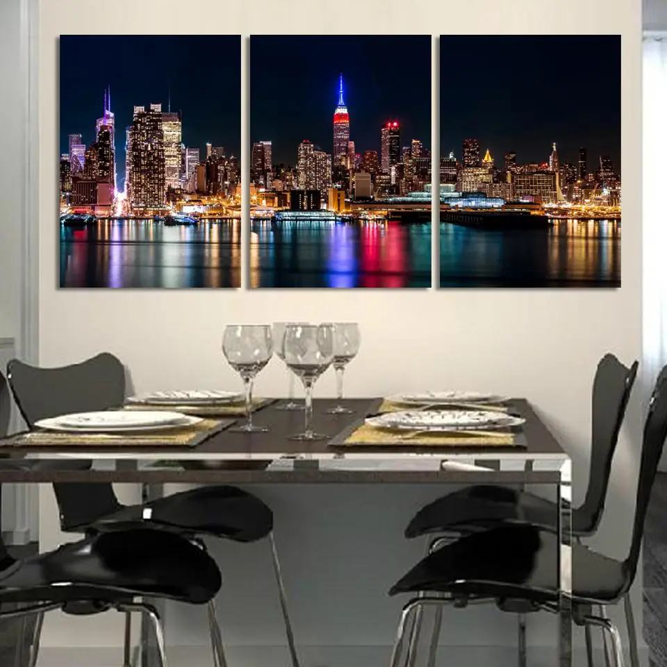 . Melhor 3 peças set Wall Art City Hall Luzes Da Noite Ao Lado Do Rio Decoração Da Parede Pictures Modern Arte Impressa Em Canvas Sem Moldura Barato Online Preço.