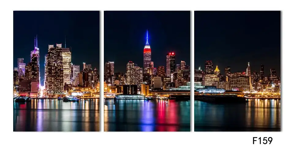 Comprar 3 peças set Wall Art City Hall Luzes Da Noite Ao Lado Do Rio Decoração Da Parede Pictures Modern Arte Impressa Em Canvas Sem Moldura Baratas Online Preço
