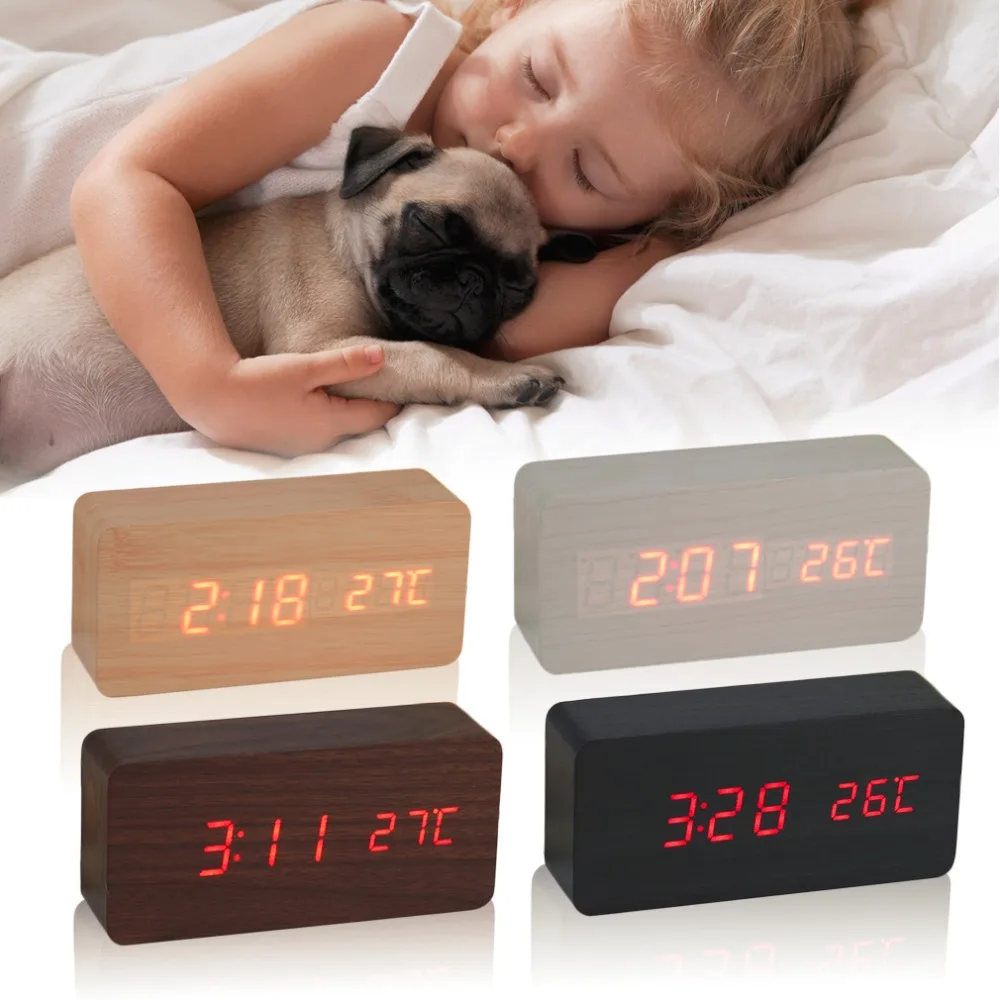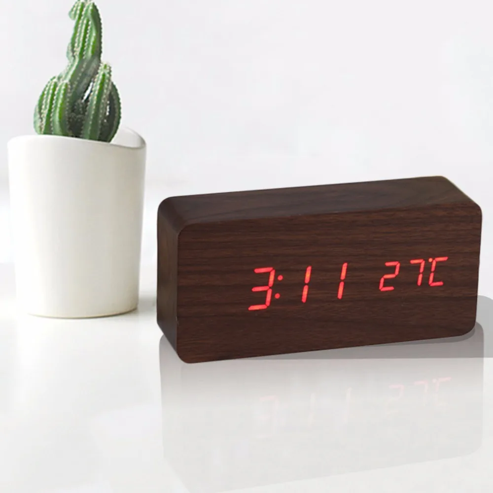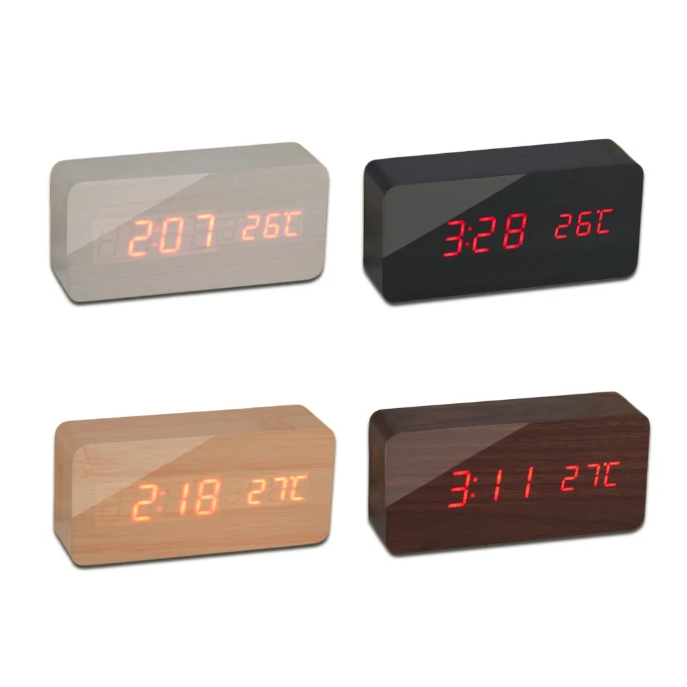 Comprar 4 Cores Tamanho Grande LED Despertadores com Termômetro Retângulo Relógios de Mesa De Madeira Clássico Relógio Digital LED Relógios De Madeira Baratas Online Preço