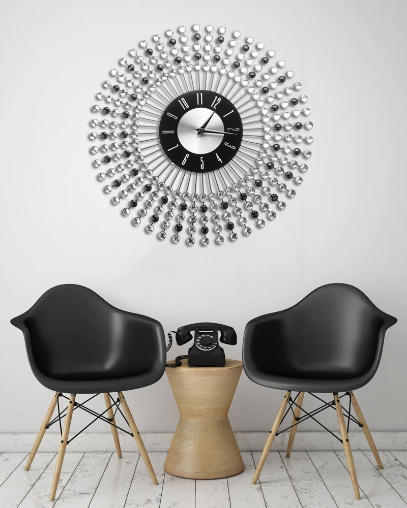 . Melhor 43 cm Preto Sunburst Frisada Jóias de Quartzo Relógio de Parede Relógio de Parede Arte Moderna Relógio de Parede de Decoração Para Casa Barato Online Preço.