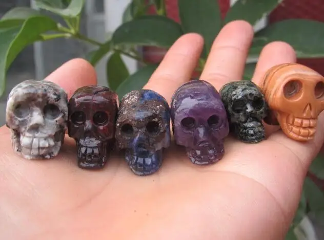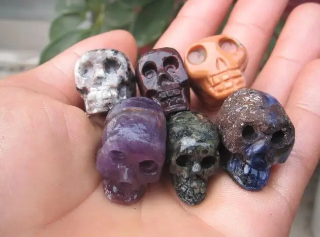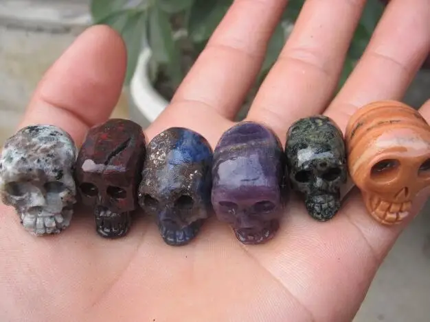 Comprar 6 pcs colorido natural esculpida caveira de cristal de quartzo cura sem polimento Baratas Online Preço