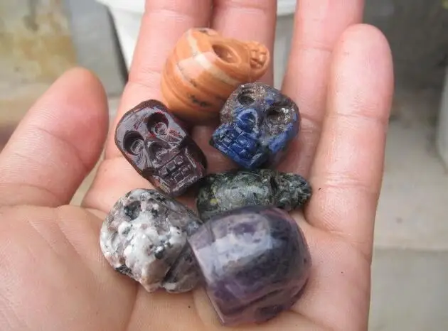 Comprar 6 pcs colorido natural esculpida caveira de cristal de quartzo cura sem polimento Baratas Online Preço.