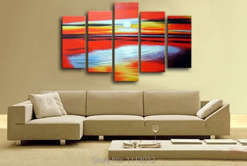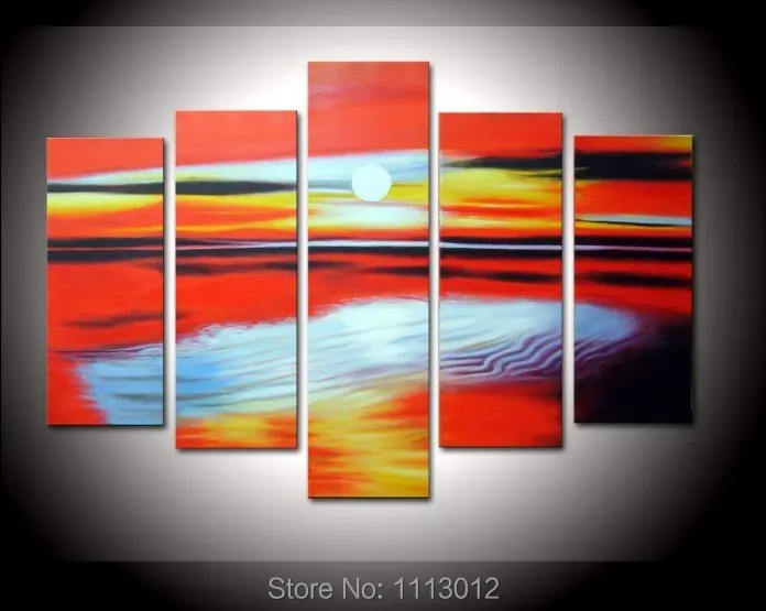 DE recursos for Mobirise caseiro ele. Melhor Alta Qualidade Nuvens Pintura A Óleo Do Mar Na Lona do Sol Vermelho 5 P Set Seascape Wall Art Imagem Para Sala de estar Decoração de Casa moderno Barato Online Preço.