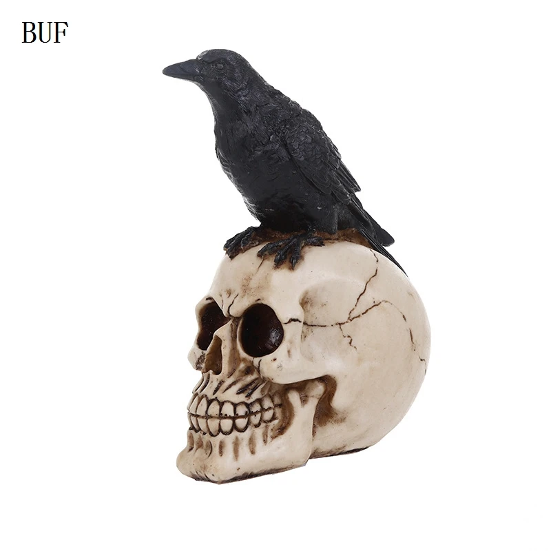 Comprar BUF Ofício da Resina Estátuas Cabeça Do Crânio Humano Com Corvo Crânio Criativo Ornamento Estatuetas Escultura Casa Acessórios de Decoração Baratas Online Preço