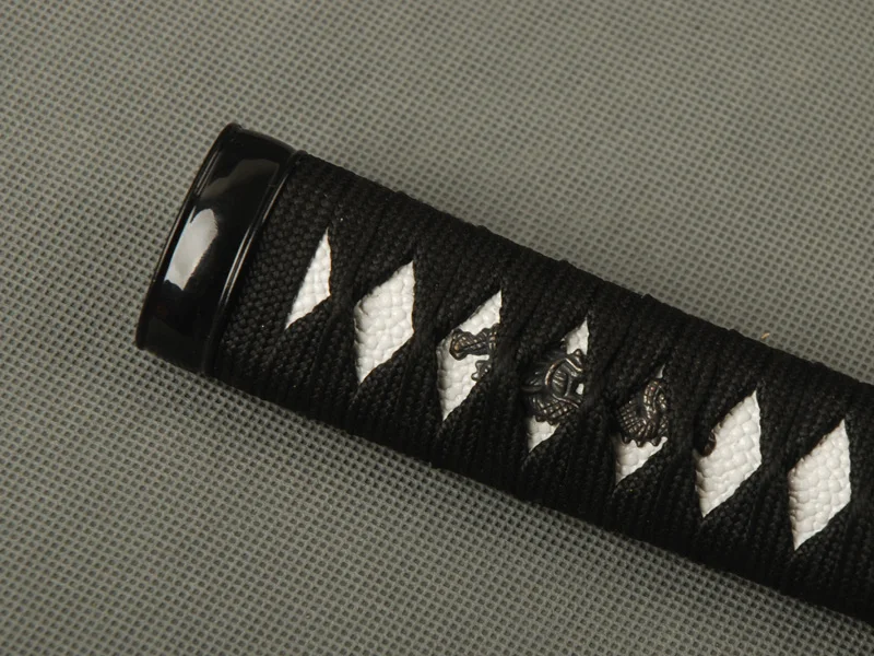 Comprar Clássico e Delicado Tsuka Ito Imitado Seda Preta Branco Rayskin Liga Fuchi Kashira para Japonês Espada Katana Handle H2 Baratas Online Preço.