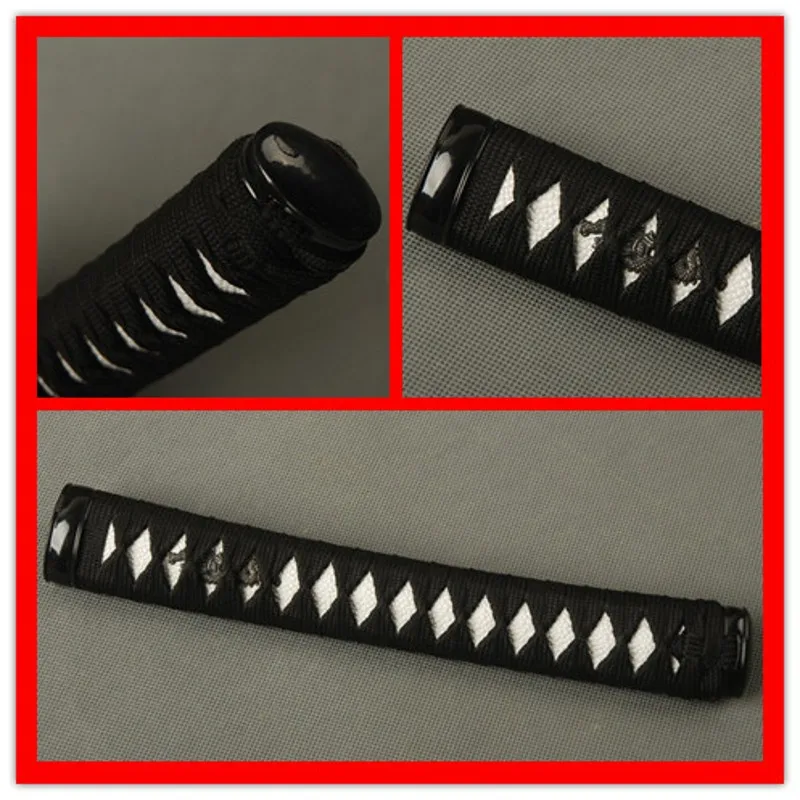 . Melhor Clássico e Delicado Tsuka Ito Imitado Seda Preta Branco Rayskin Liga Fuchi Kashira para Japonês Espada Katana Handle H2 Barato Online Preço.