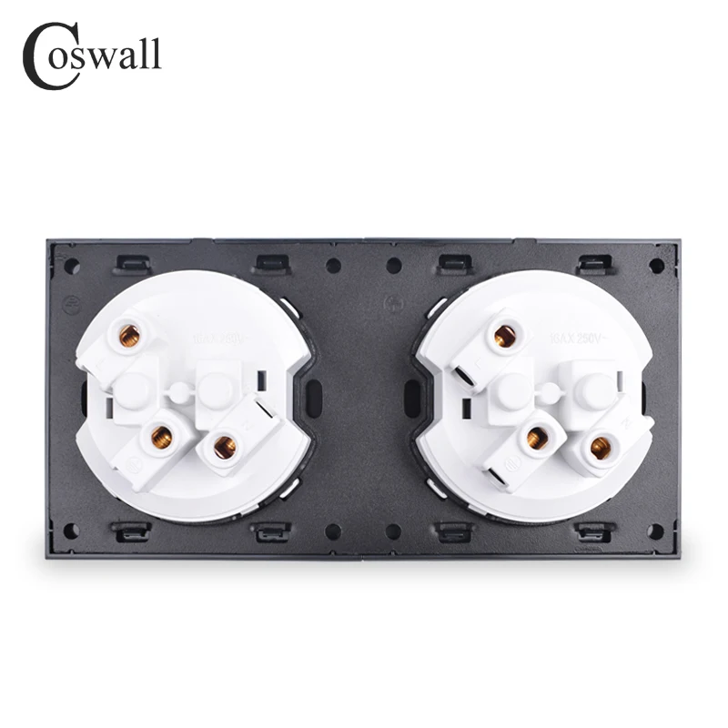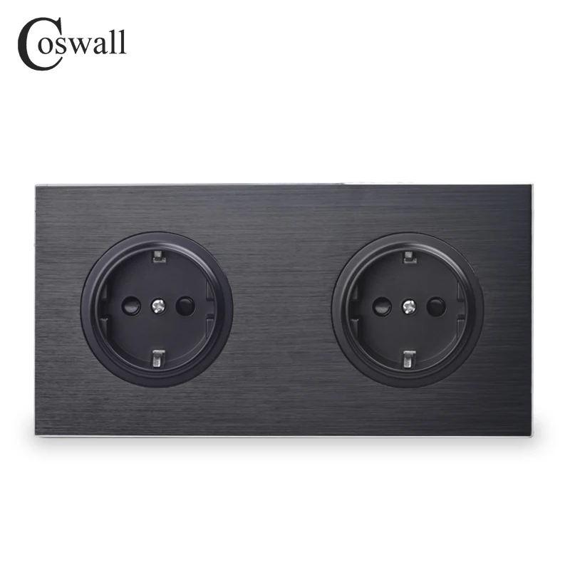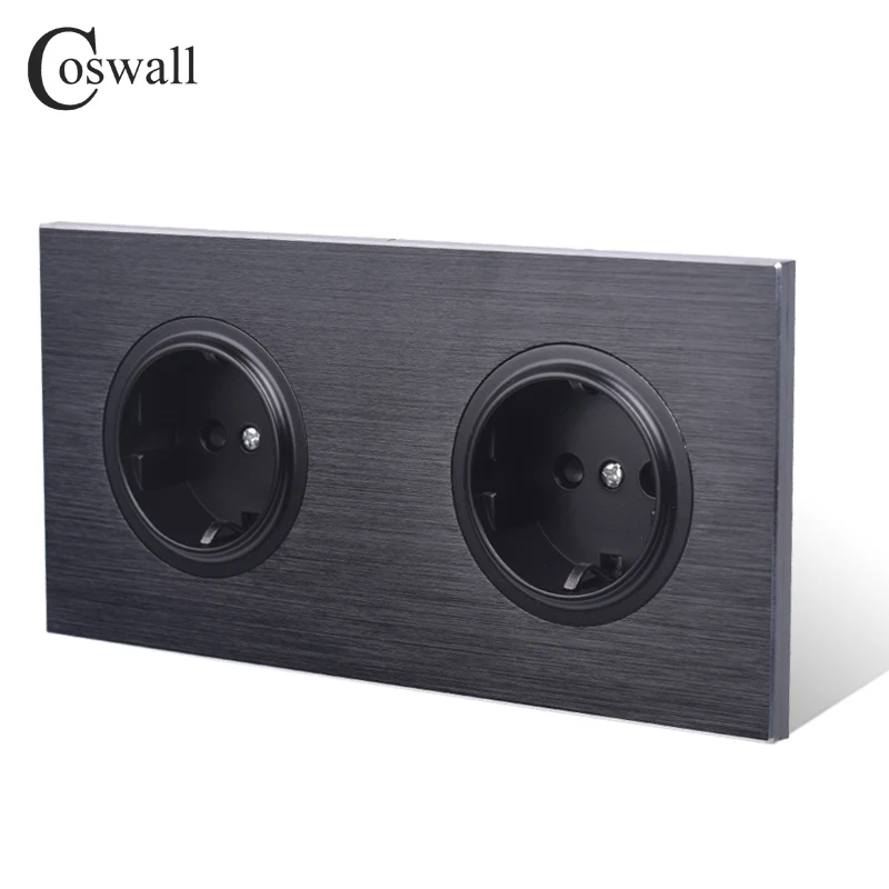 Comprar Coswall Luxuoso 16A Duplo Padrão DA UE Parede Tomada Painel De Alumínio Preto 2 Maneira Tomada Aterrada Com Trava de Proteção à Criança Baratas Online Preço.