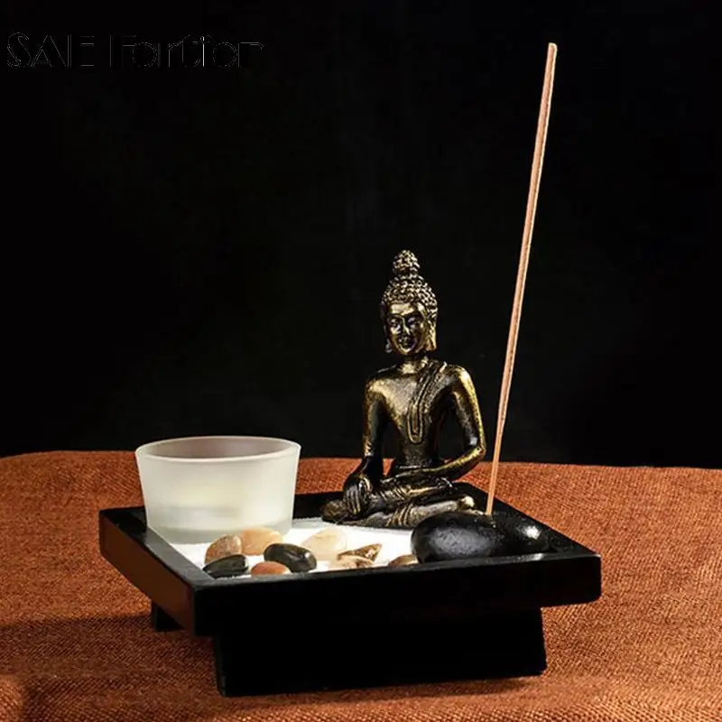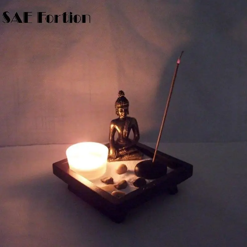 . Melhor EZLIFE Zen Buddha Areia da Resina Buda Castiçal Suporte de Vela Tealight Incenso Fragrância Casa Decoração Feng Shui Artesanato Barato Online Preço.