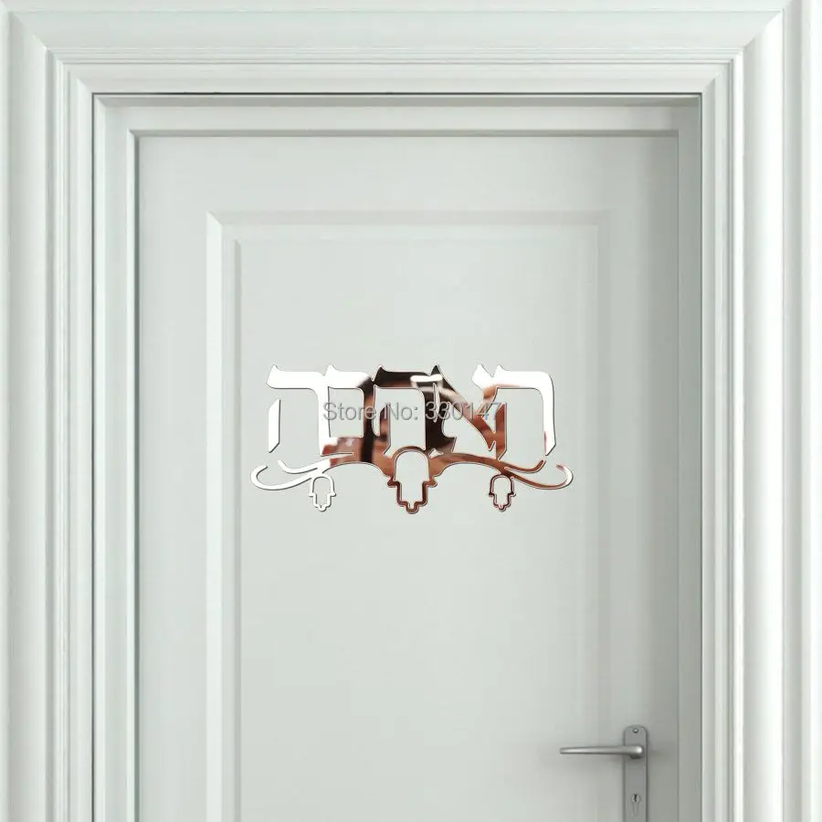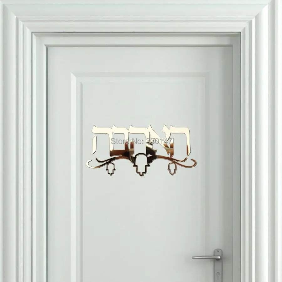 . Melhor Hebraico Doorplate Indicação Feita de Acrílico Adesivos de Parede Espelho Para O Costume Seu Nome de Família Com Três Hamsa Barato Online Preço.