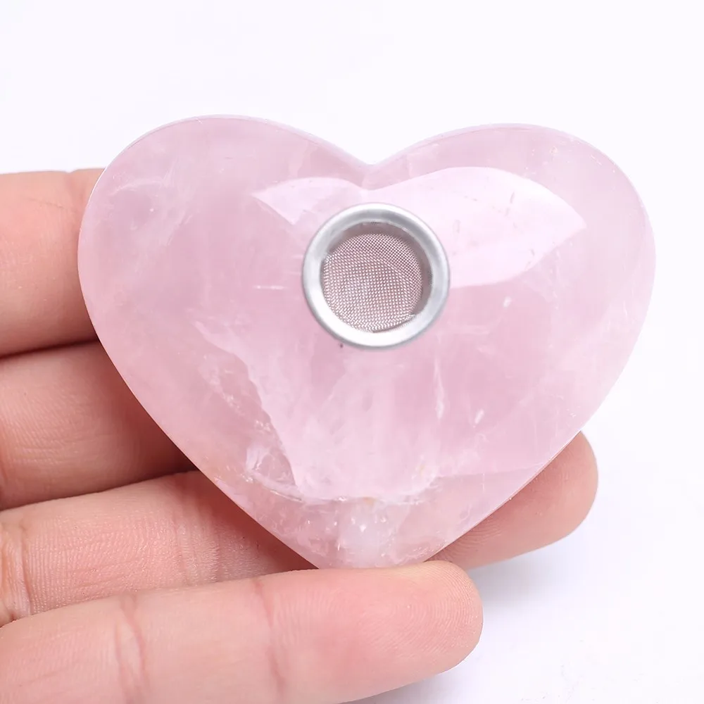 Comprar Novo Coração de Cristal Tombado cachimbos Rosa Rosa De Cristal De Quartzo Tubos de Fumar Baratas Online Preço.