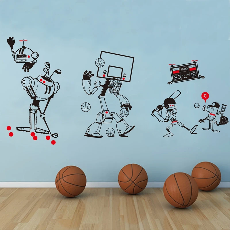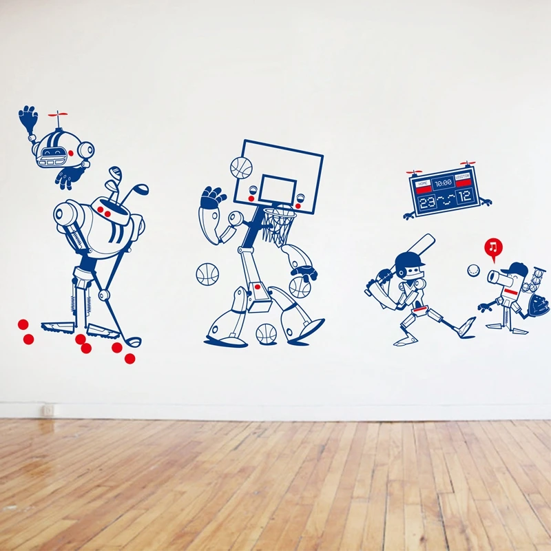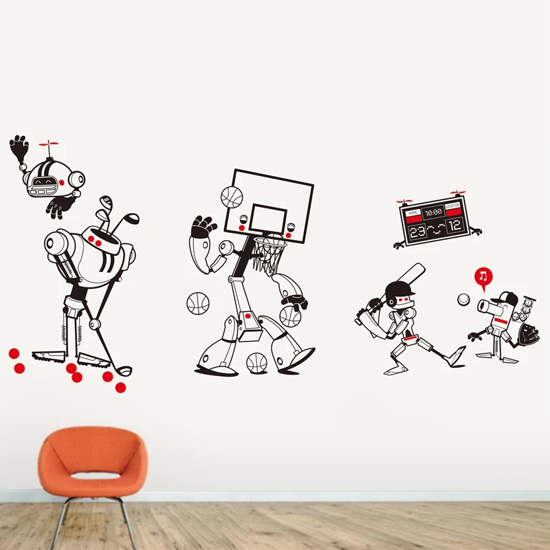 . Melhor Original novo Design Estilo Bonito Projeto do Robô Removível À Prova D Água Esportes Dos Desenhos Animados do Vinil Adesivos de parede Berçário Meninos quarto, k001 Barato Online Preço.