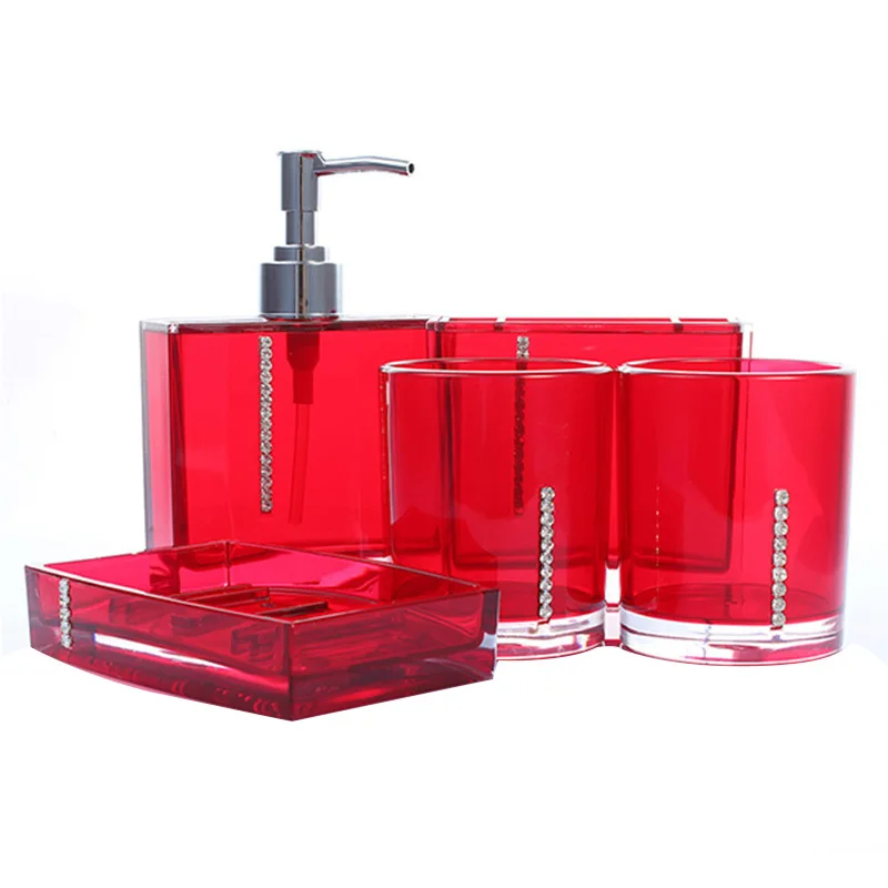 Comprar Peças acessórios de casa de banho wc Conjunto dispensador de sabão Escova De Dentes copo vermelho Baratas Online Preço.