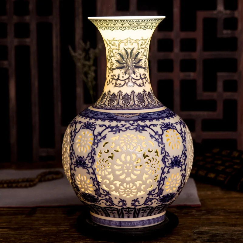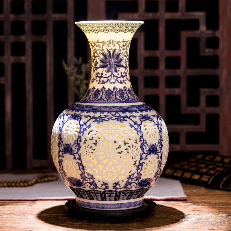 Comprar Perfurado Oco Vaso de Cerâmica Chinesa de Jingdezhen Azul E Branco Vaso Sala de estar Decoração Vaso De Flor Da Porcelana Baratas Online Preço.