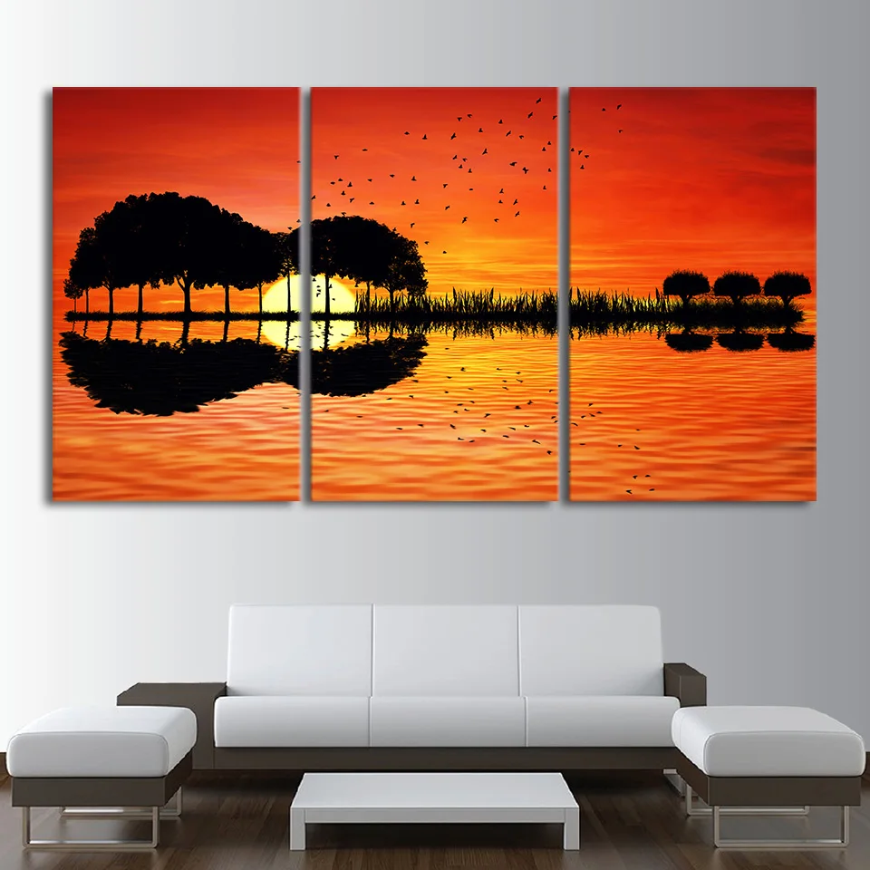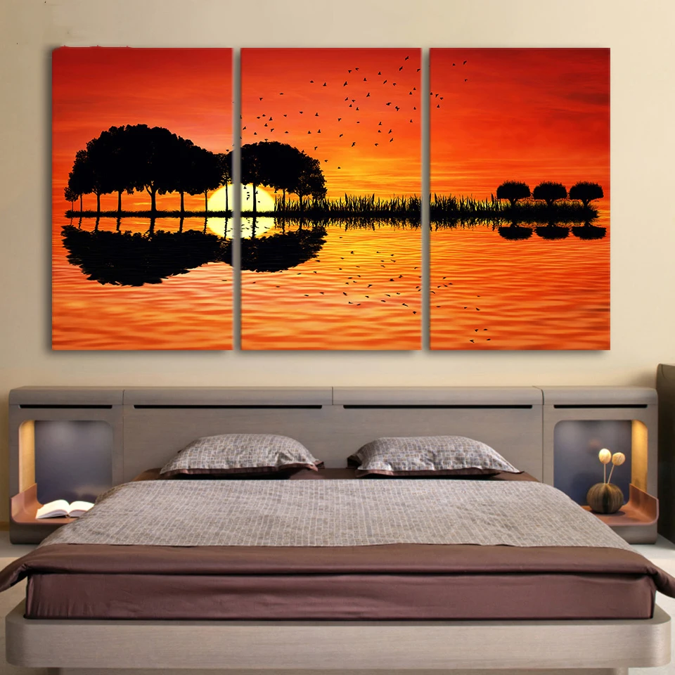 Comprar Pictures Para Sala de estar Decoração de casa Modular 3 Peça Árvore Da Guitarra Lake Sunset Moderna Sobre A Arte Da Parede Pintura Abstrata Na Lona Baratas Online Preço.