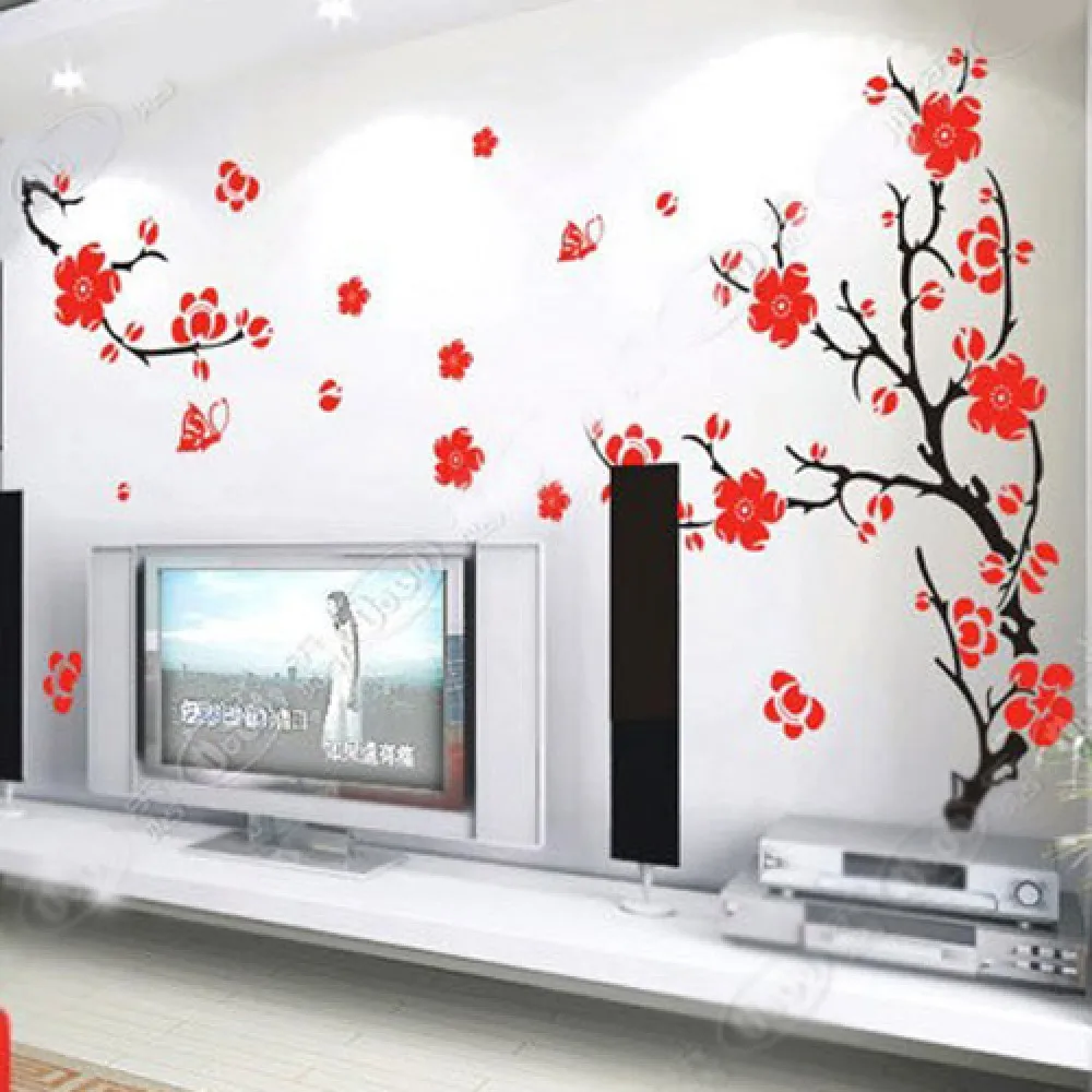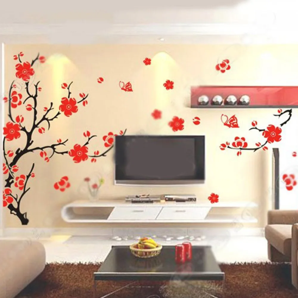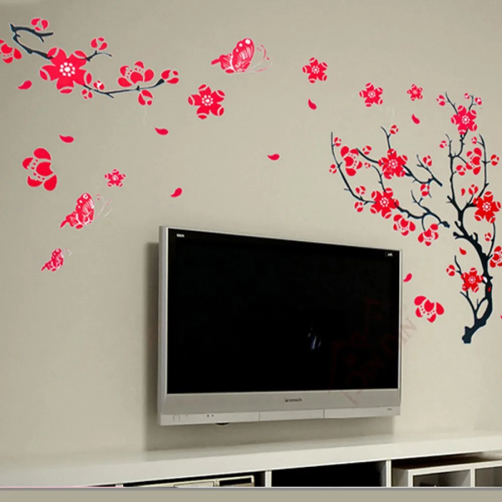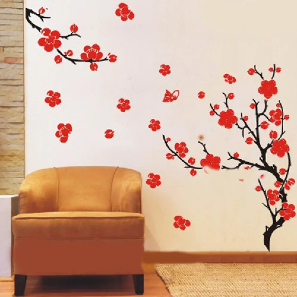 Comprar Plum blossom flores da árvore de adesivos de parede plum com dois ramos g0xy8029 papéis de parede flor decalques de parede adesivos de decoração para casa Baratas Online Preço.