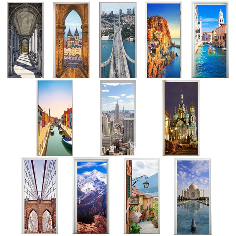 Comprar Porta Adesivos Quadrados Taj Mahal Manarola Ama Dablam Lago como Canal de Veneza Igreja de Saint Petersburg Arte Corredor Decoração Pasta Baratas Online Preço
