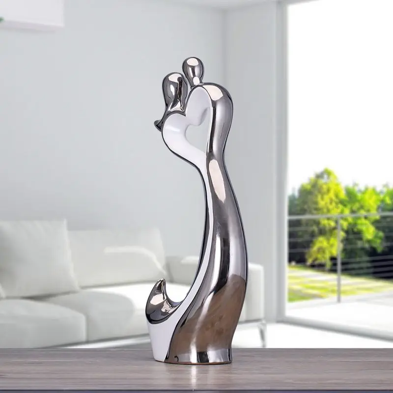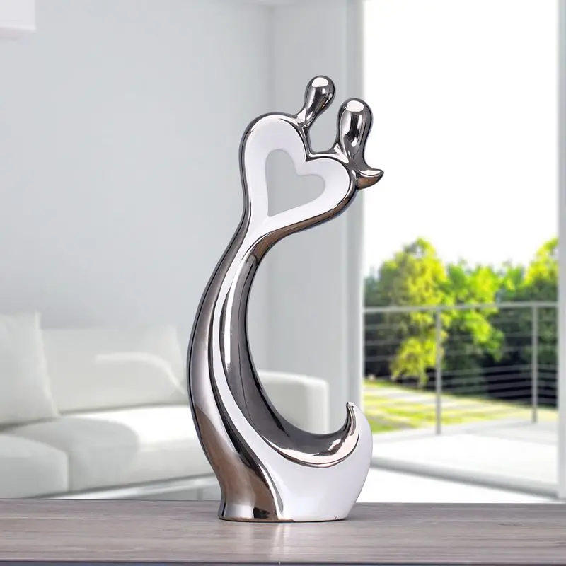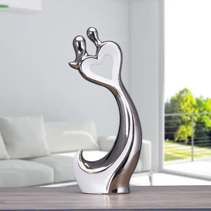 Comprar Prata branco amantes de cerâmica artesanato de decoração para casa decoração do quarto de cerâmica kawaii decorações de casamento ornamento estatuetas de porcelana Baratas Online Preço