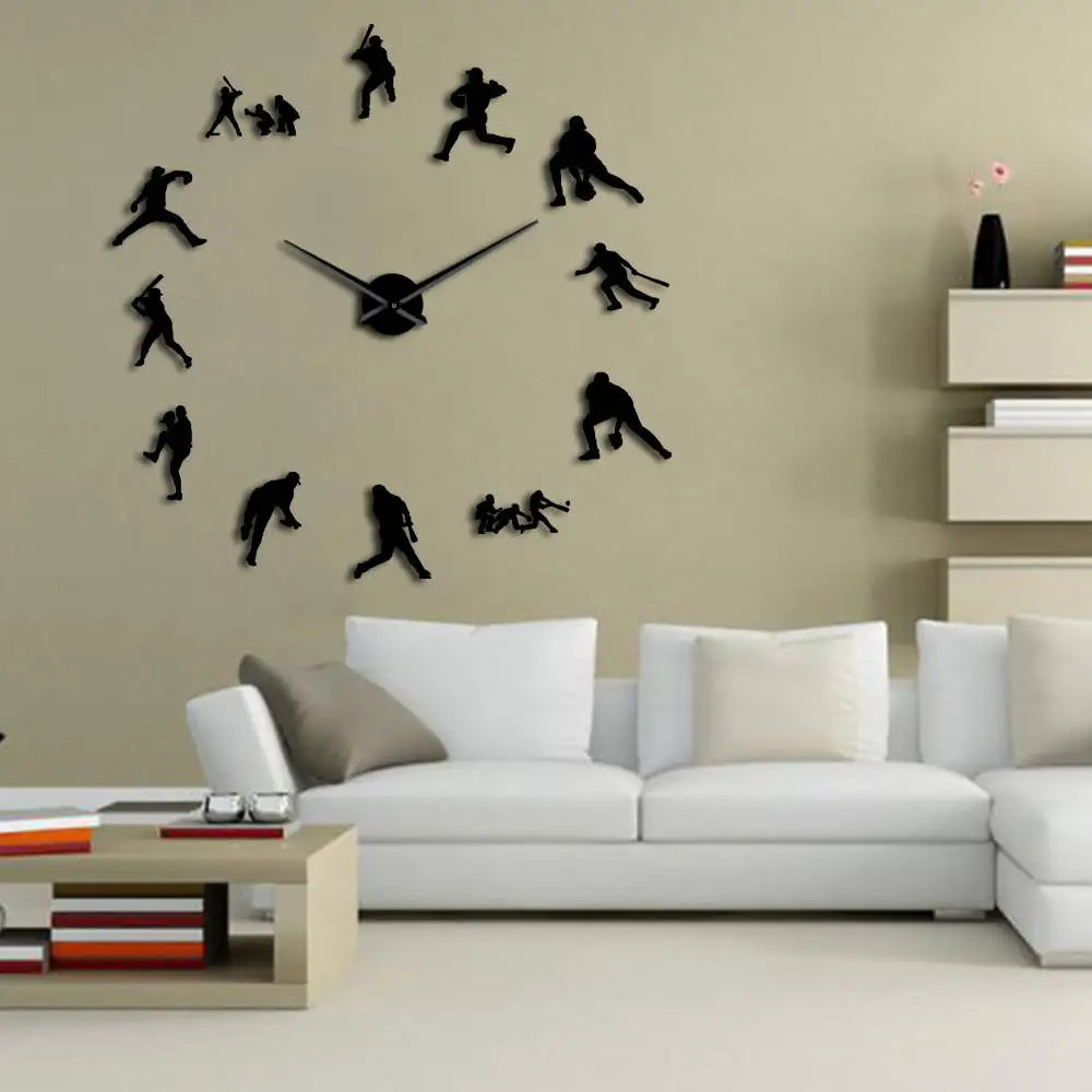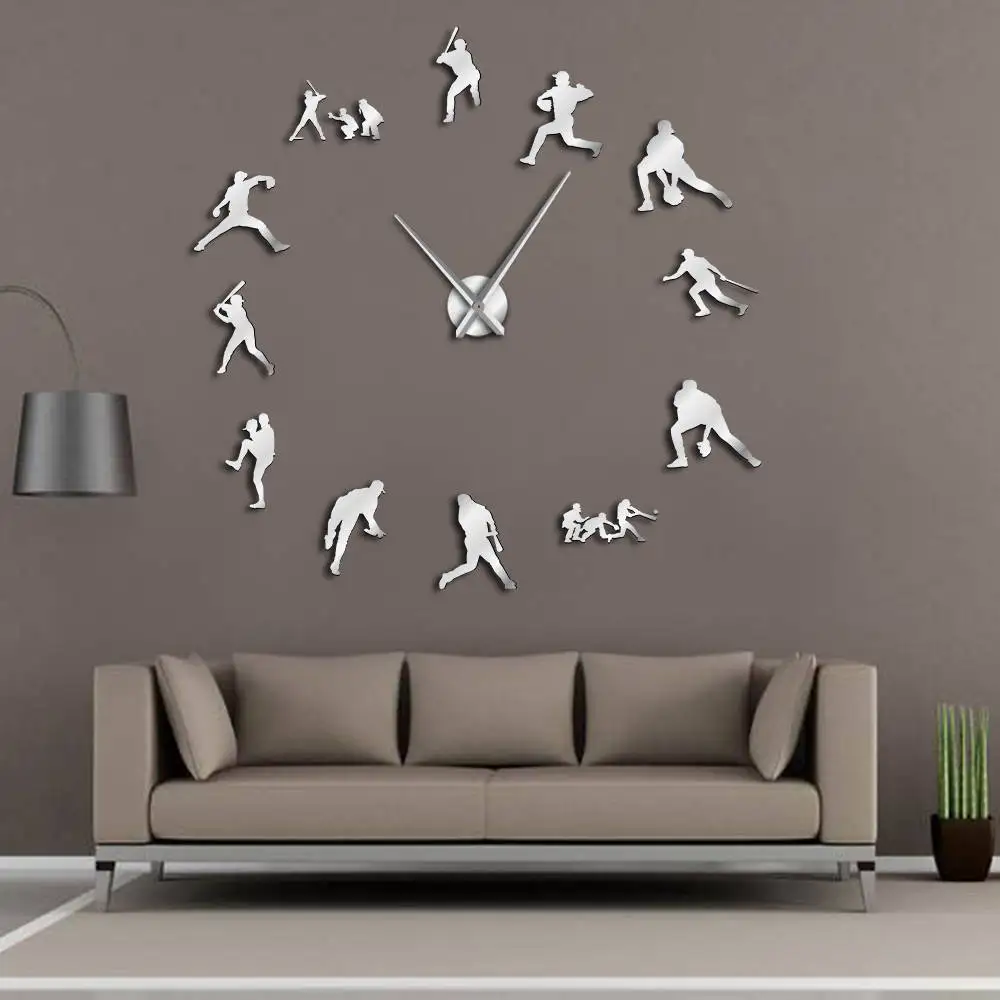 Comprar Relógio de Parede decorativo Moderno Baseball 3D Frameless DIY Relógio Gigante Relógio Espelho Efeito Softball Arte Da Parede Sala de estar Decoração Da Parede Baratas Online Preço.