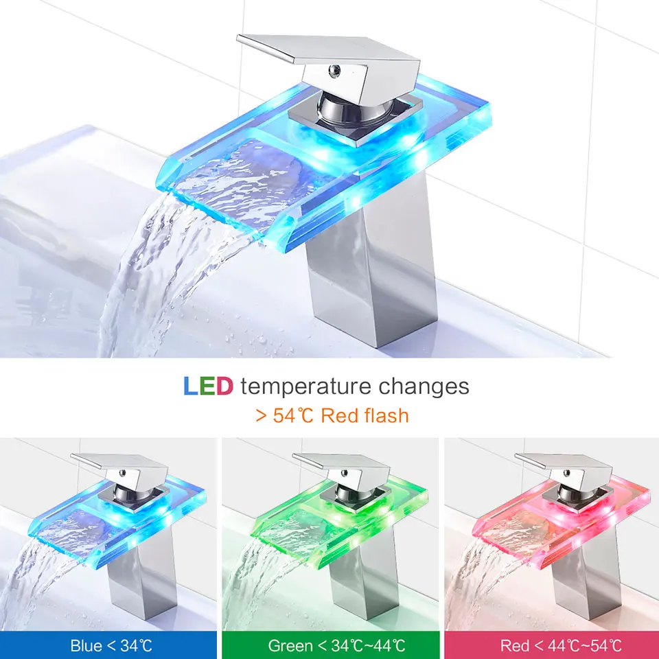 Comprar ROVATE Cores Mudança de Temperatura LED Faucet Bacia Latão Cachoeira Banheiro Mixer Tap Deck Montado Torneiras de Pia de Lavagem de Vidro Baratas Online Preço.