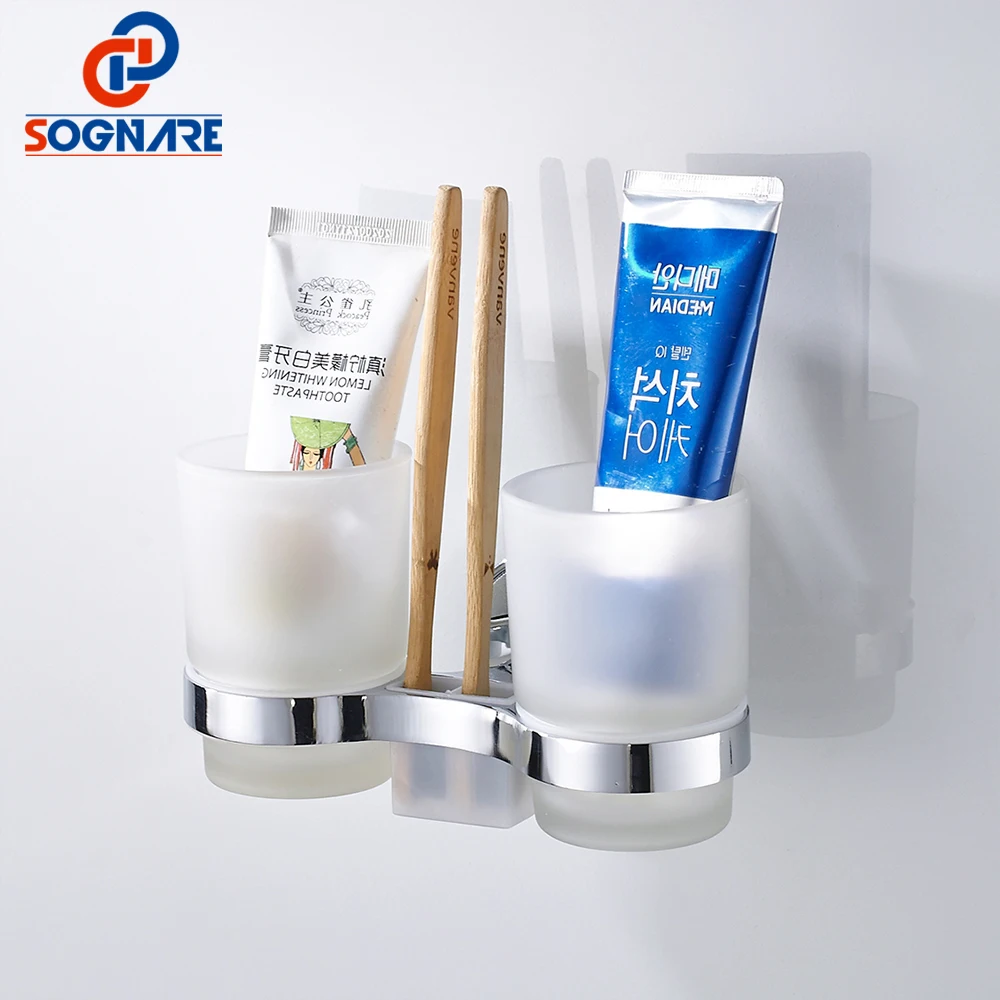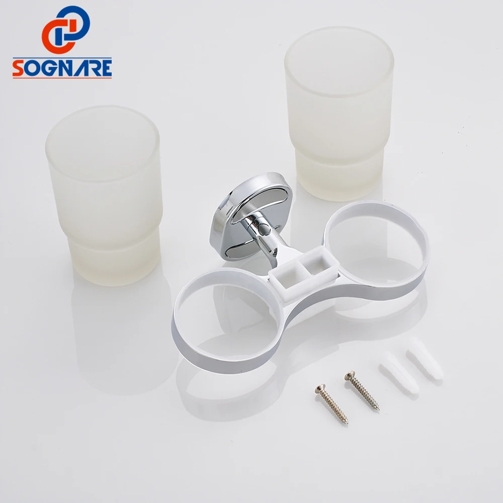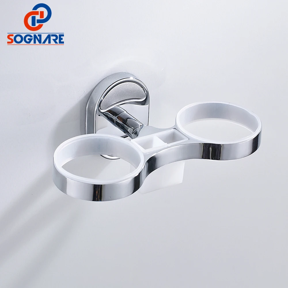 Comprar SOGNARE Prata liga de Zinco Suporte de Copo Escova de Dentes Escova de Dentes Titular Duplo Copo Copos De Vidro Montagem Na Parede Acessórios Do Banheiro Do Cromo 1608 2 Baratas Online Preço.