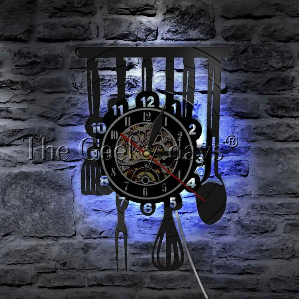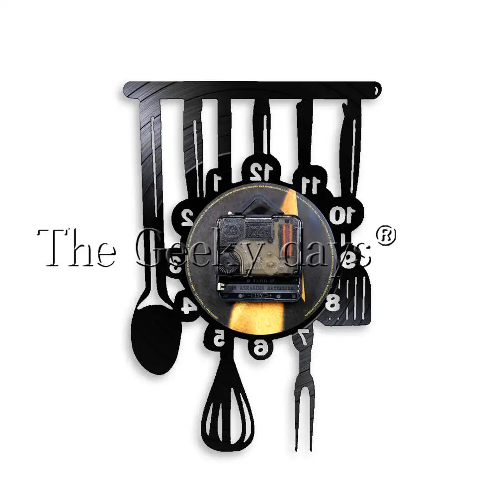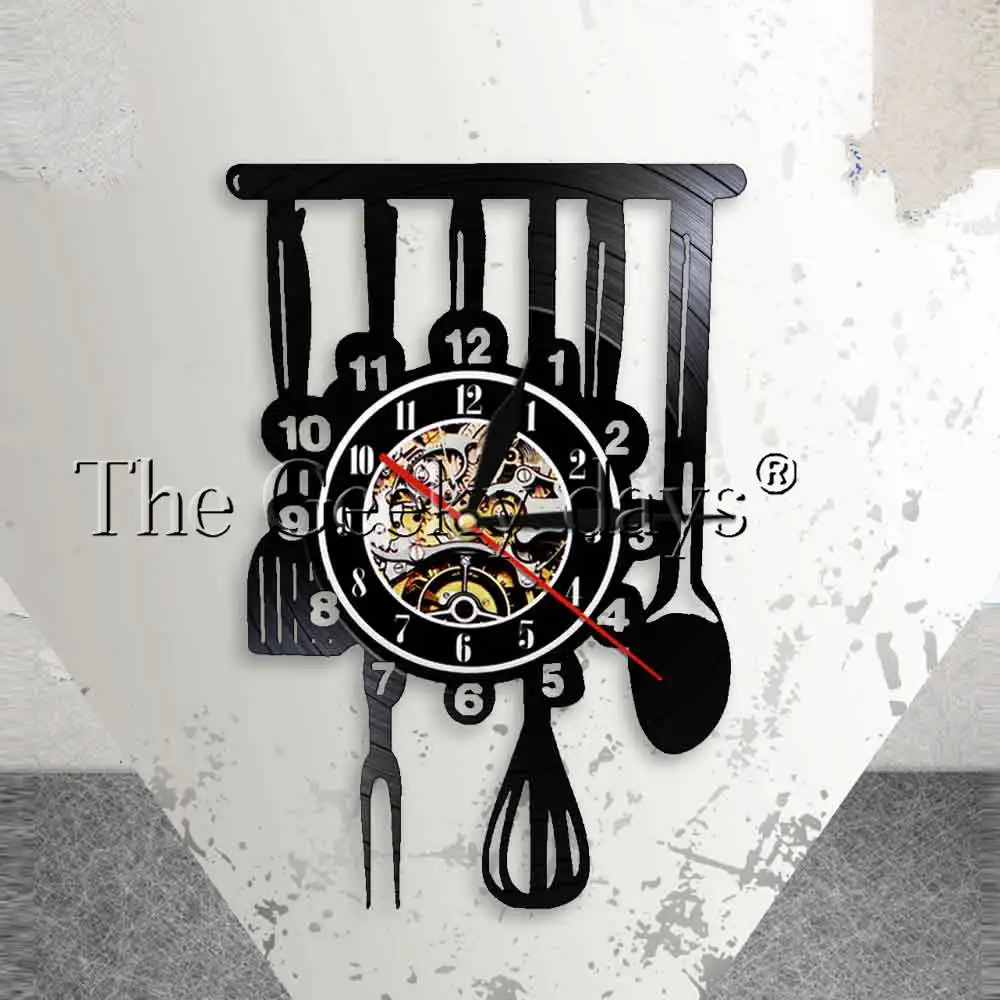 Comprar Talheres de Cozinha Da Fazenda Assinar Arte Relógio de Parede Sala de Jantar Restaurante Talheres Utensílio de Disco de Vinil Relógio de Parede Da Decoração Da Parede Do Vintage Baratas Online Preço