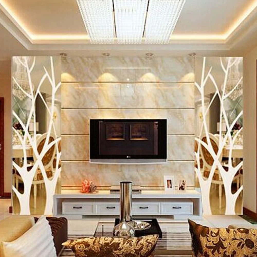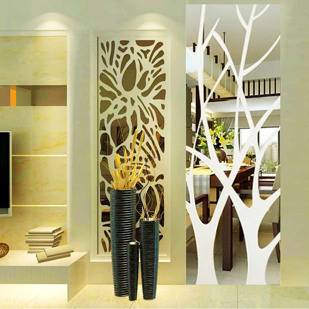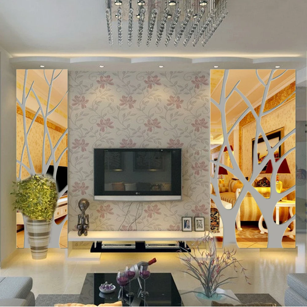 Comprar Teste Padrão da árvore de Efeito de Espelho Acrílico 3D Adesivos de Parede DIY Art Decor Da Parede da Sala Adesivos Decorativos Decalques de Decoração Para Casa Baratas Online Preço.