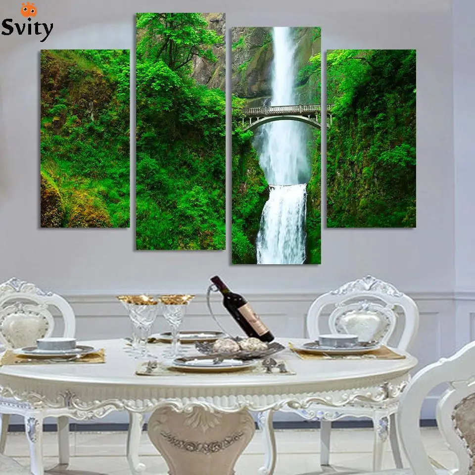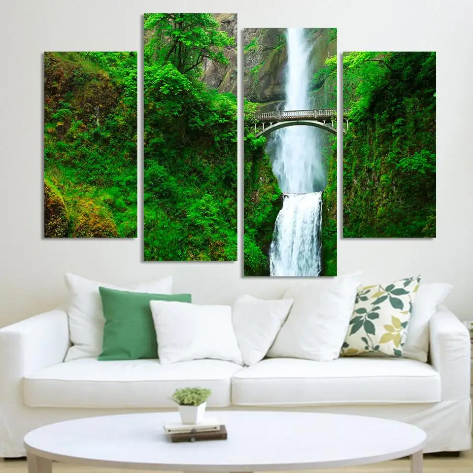 . Melhor UnFramed Impresso árvore verde e cachoeira Pintura restaurante decor impressão imagem do cartaz da lona Frete grátis Barato Online Preço.