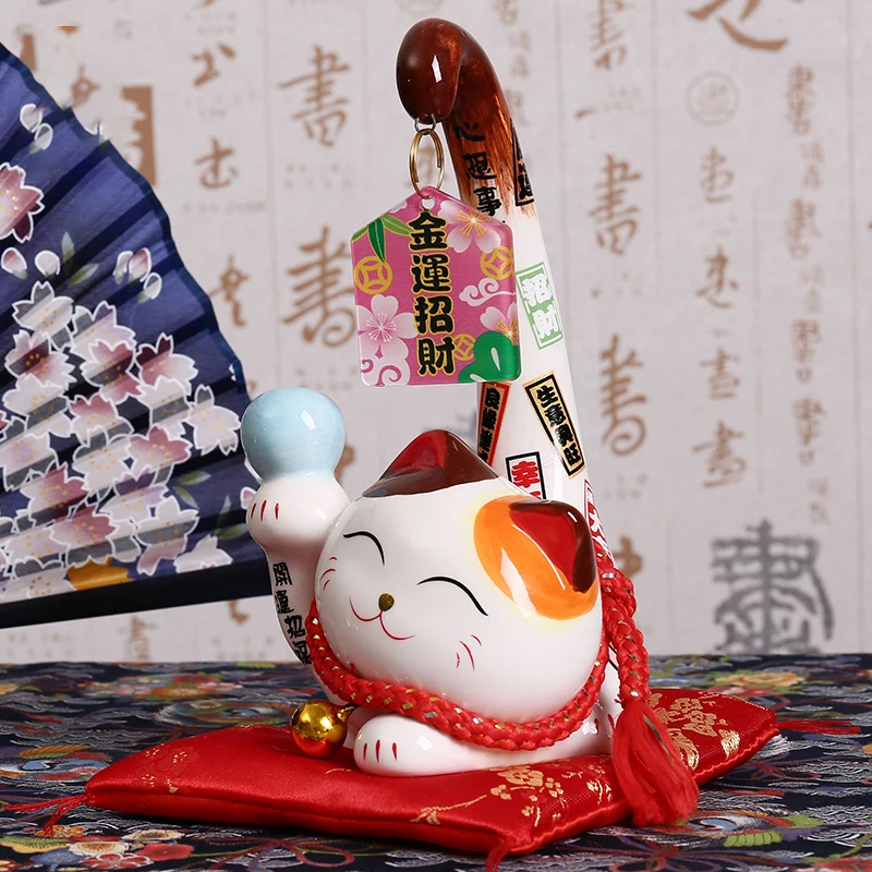 . Melhor 1 pc Estilo Japonês Maneki Neko Gato Sorte Cerâmica Ornamento Gato maracajá Longa Cauda de Gato Dos Desenhos Animados Estatueta Estátua Casa Decorativo Barato Online Preço.