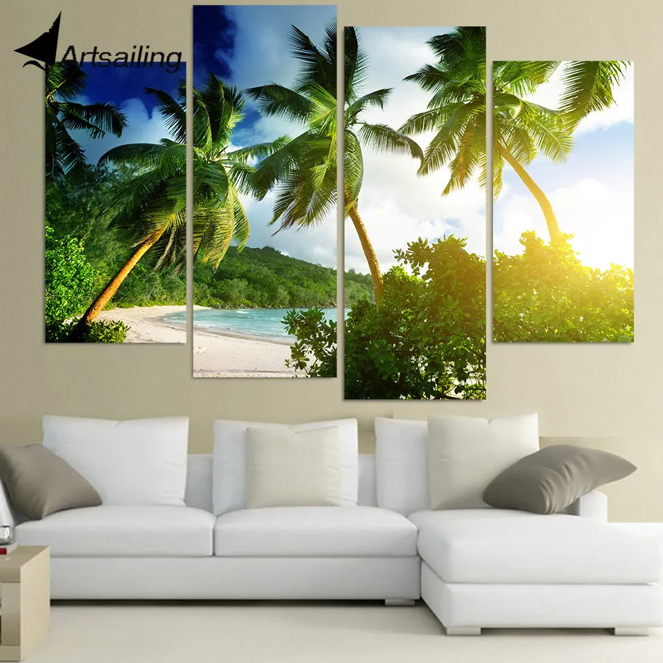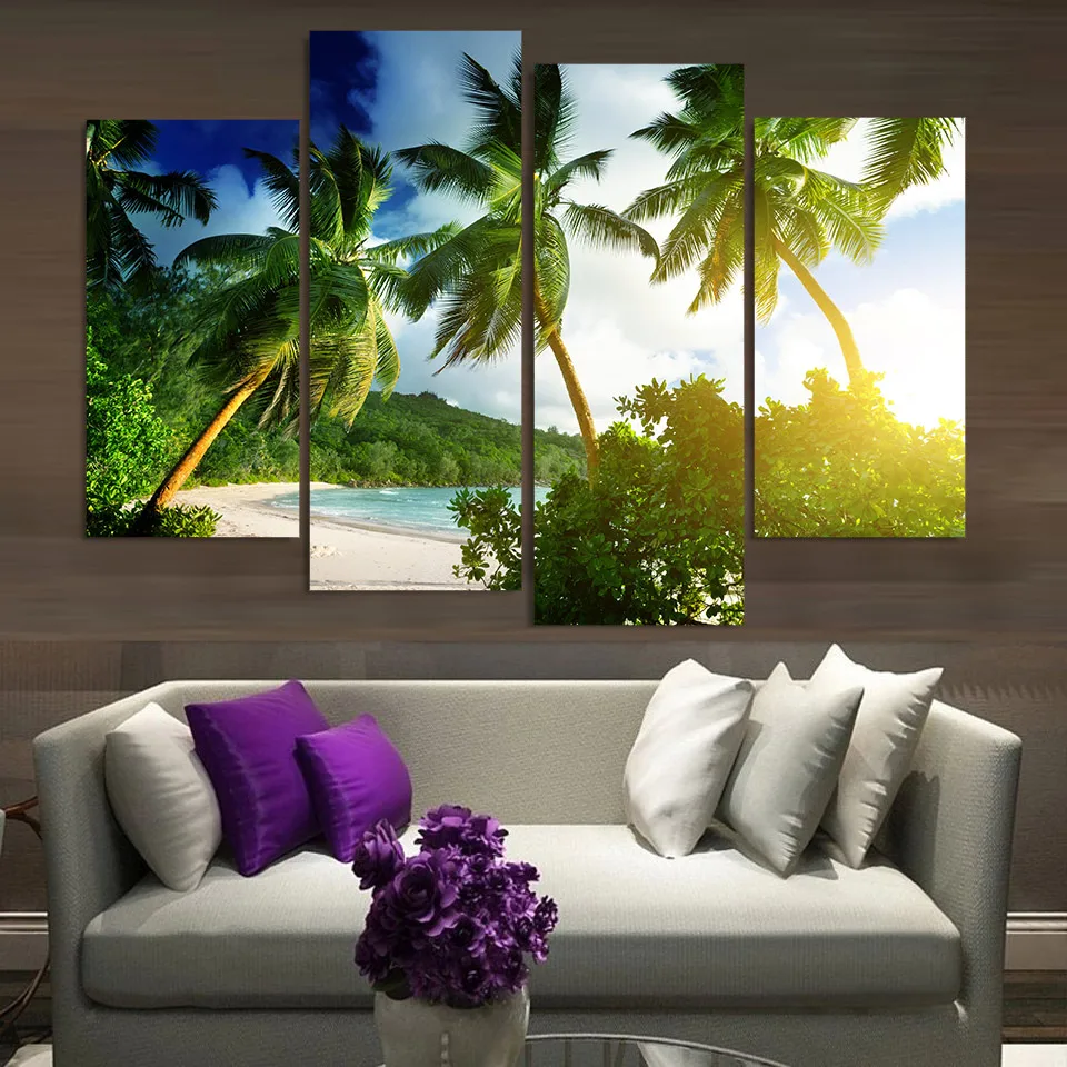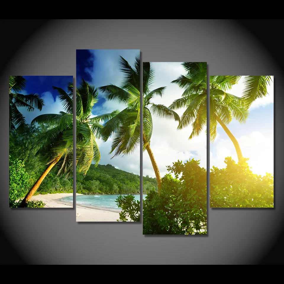 Comprar 4 Pcs Pintura Da Lona Da Arte Da Lona Sobranceiro Tropicais Árvores HD Impresso Arte da parede Poster Home Decor Parede Pictures para Sala de estar XA278B Baratas Online Preço.