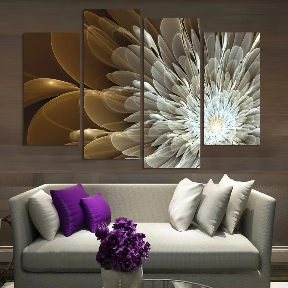. Melhor 4 pcs A Riqueza E Luxo Flores Douradas do Retrato da parede Pintura de Impressão na lona decoração de casamento Modular Barato Online Preço.