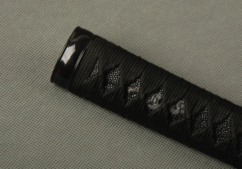 Comprar Artesanato Em Madeira De alta Qualidade Punho Tsuka para Japonês Espada Katana com preto de Seda Ito Preto Genuine Rayskin Liga Fuchi Kashira Baratas Online Preço