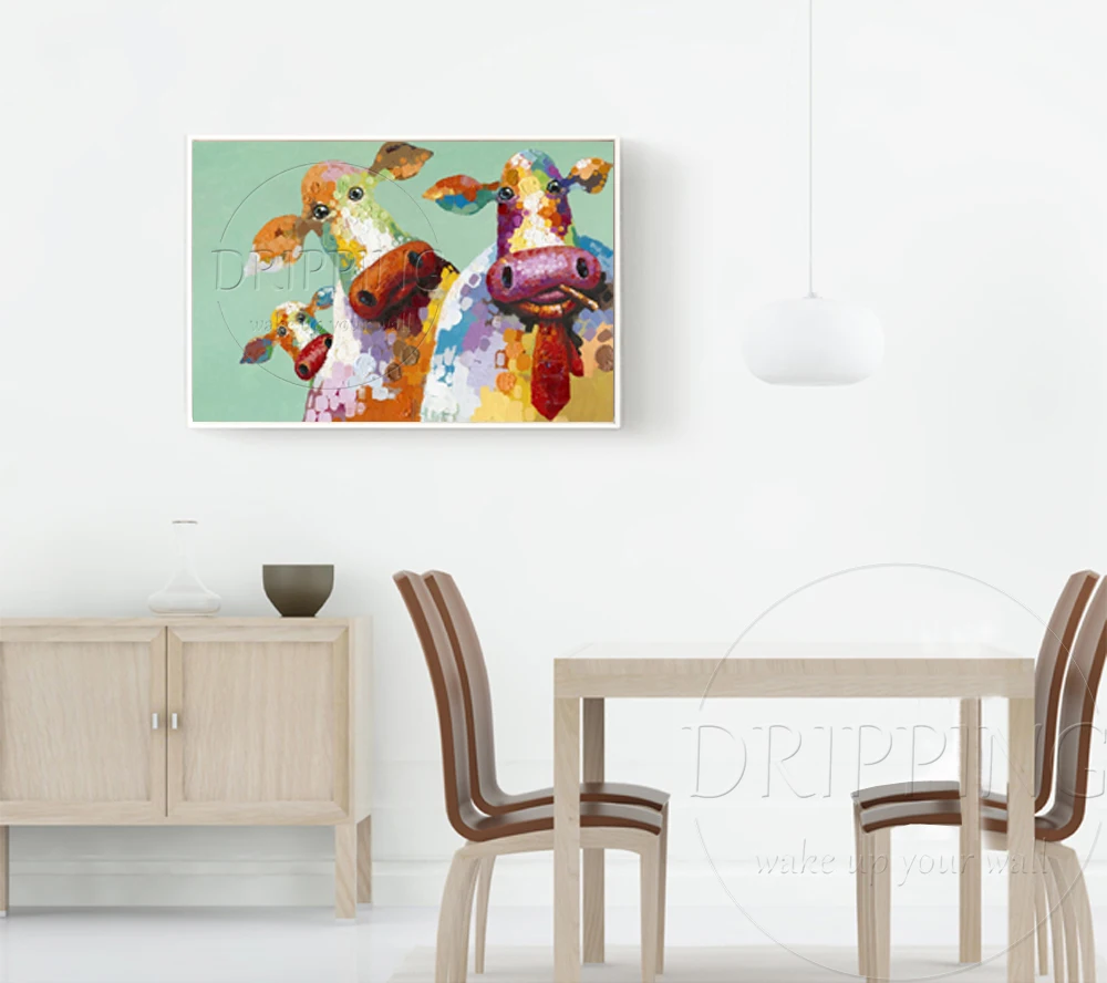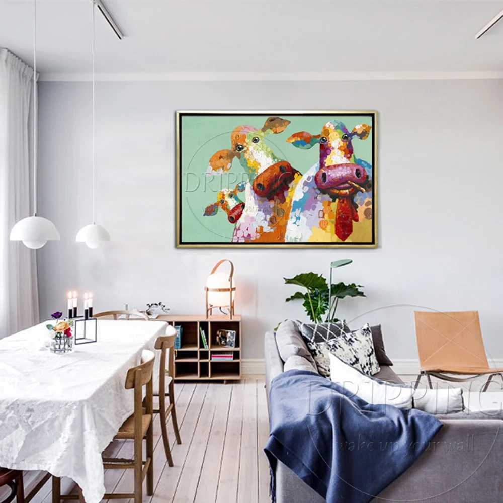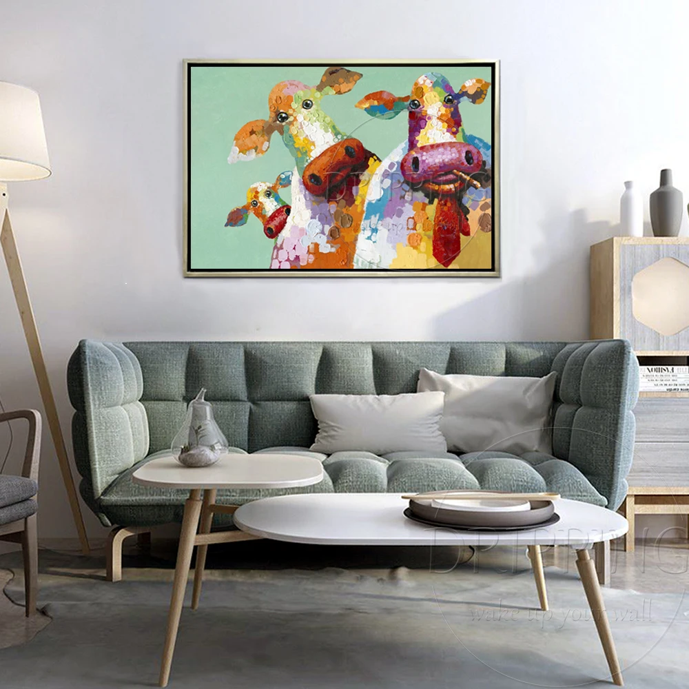 . Melhor Artista hábil Mão pintado Pintura A Óleo sobre Tela pintados à Mão de Alta Qualidade Vaca Vaca Engraçada Família Pintura A Óleo para Sala de estar Barato Online Preço.