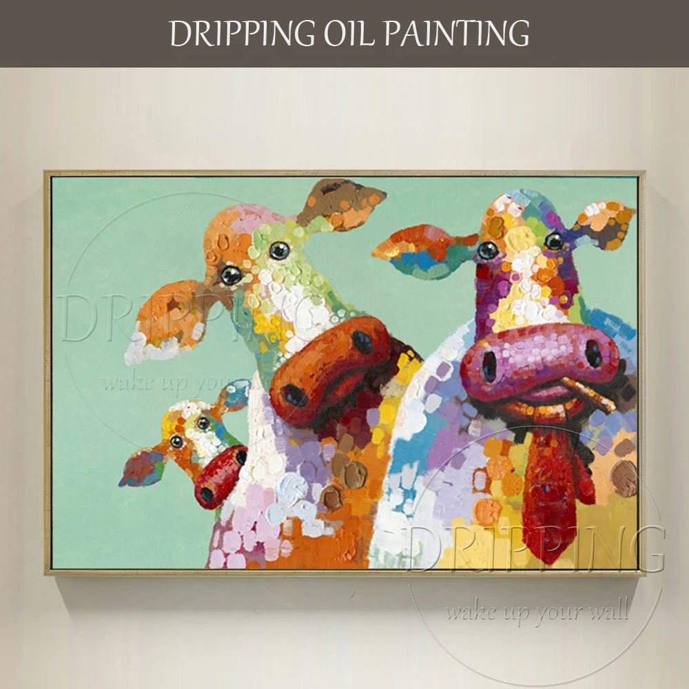 Comprar Artista hábil Mão pintado Pintura A Óleo sobre Tela pintados à Mão de Alta Qualidade Vaca Vaca Engraçada Família Pintura A Óleo para Sala de estar Baratas Online Preço.